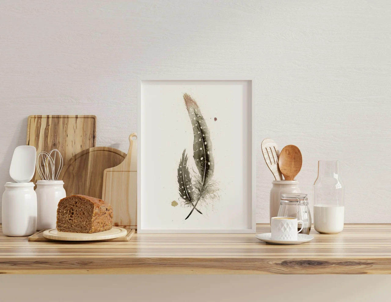 In creating this piece, I chose a serene palette using hand-made pigment Rocky Mountain #6, lending an earthy and natural feel to the feathers. With gentle, deliberate brushstrokes, I allowed the soft edges and subtle transitions to breathe a sense of discovery into the piece. The light splatters and delicate drips add depth and guide the eye to the intricate layering of shapes, inviting viewers to see beauty in simplicity and detail. — Shayna, October 2024
