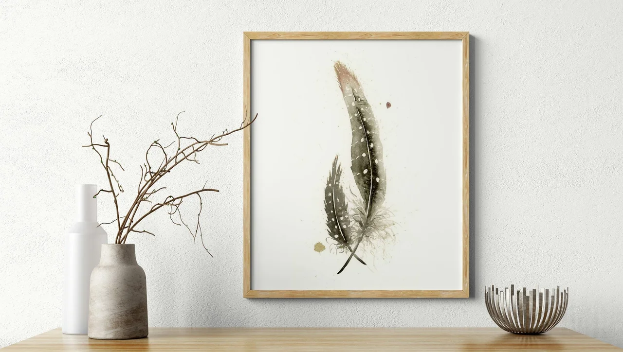 In creating this piece, I chose a serene palette using hand-made pigment Rocky Mountain #6, lending an earthy and natural feel to the feathers. With gentle, deliberate brushstrokes, I allowed the soft edges and subtle transitions to breathe a sense… read more