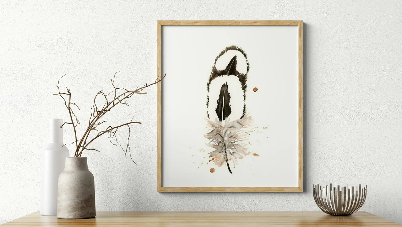 In this piece, I embraced the raw beauty of simplicity, using a rich, earthy palette of hand-made pigment, Rocky Mountain #6. The gentle transitions and delicate layering highlight the elegance of the feather, while the distinct splatters and subtle drips… read more