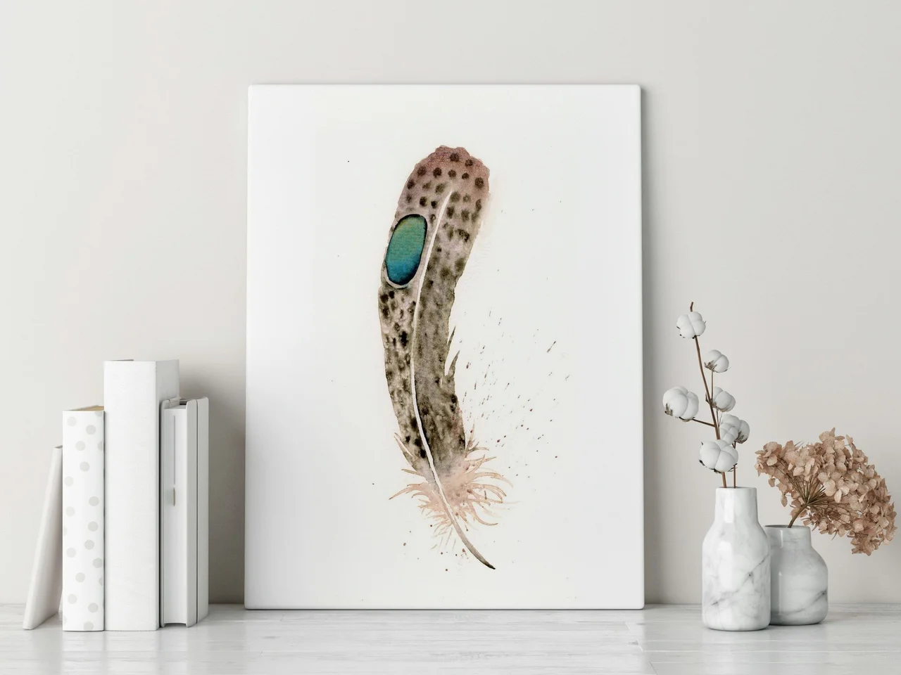 In this painting, I used a palette of soft browns and grays to capture the delicate nature of the feather, contrasted with a vibrant blue for the eye. The gentle transitions and subtle layering highlight the feather's texture, while the… read more