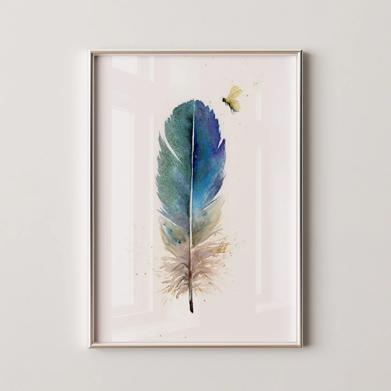 In creating this piece, I embraced the soothing blend of cool blues and warm browns to convey the delicate strength of the feather and the whimsical nature of the nearby bee. The gentle transitions and subtle layering were achieved with… read more
