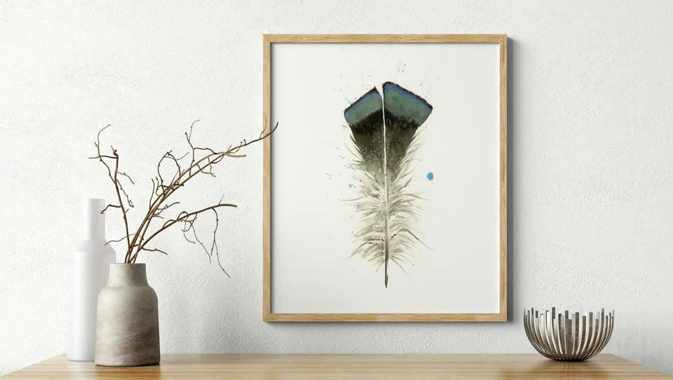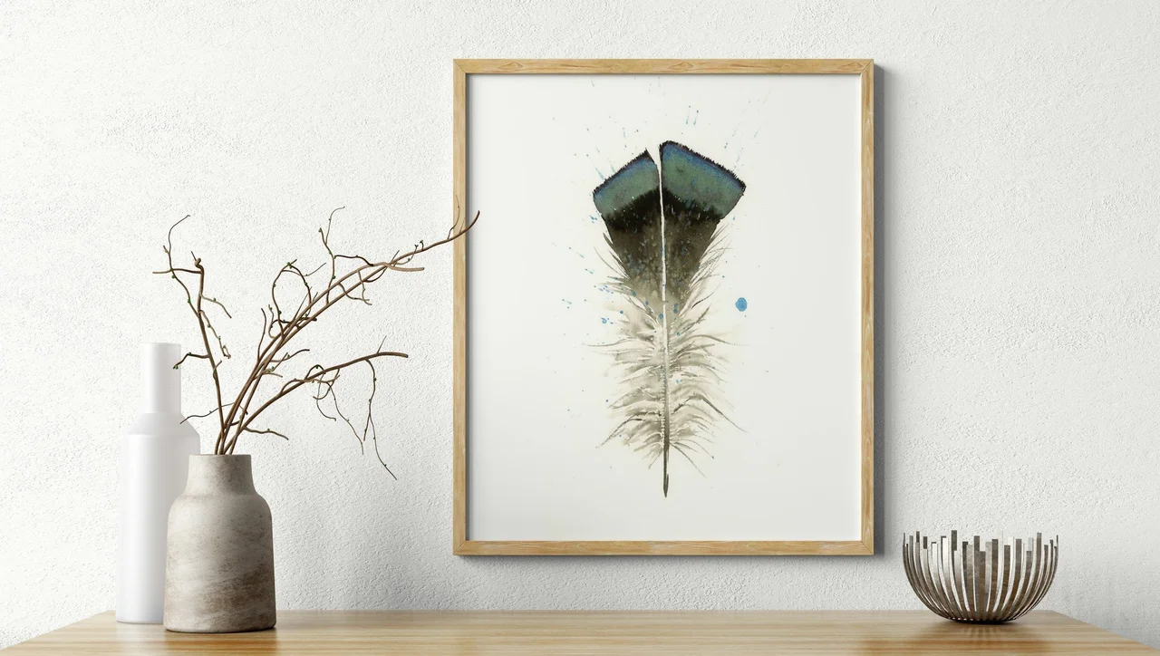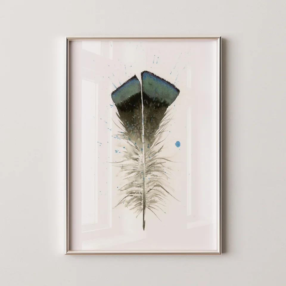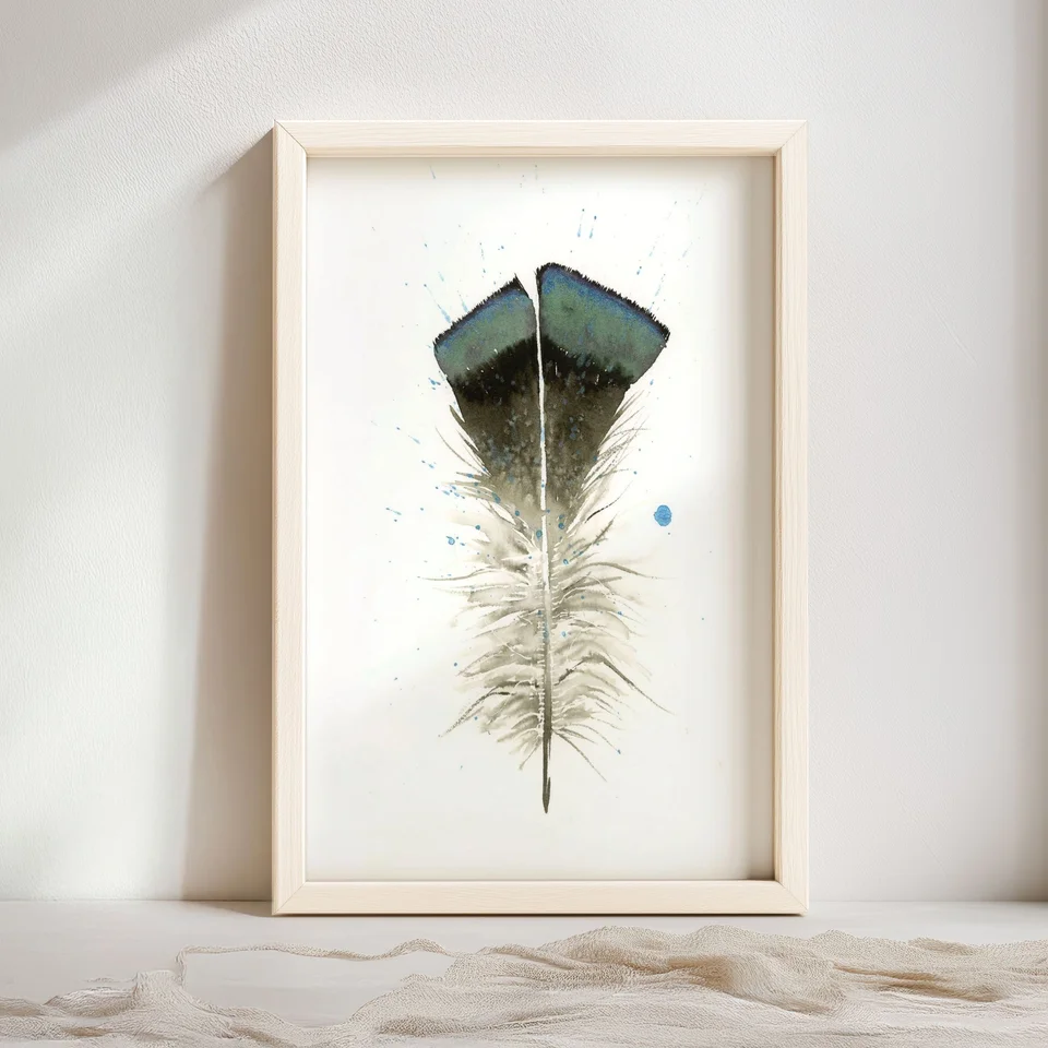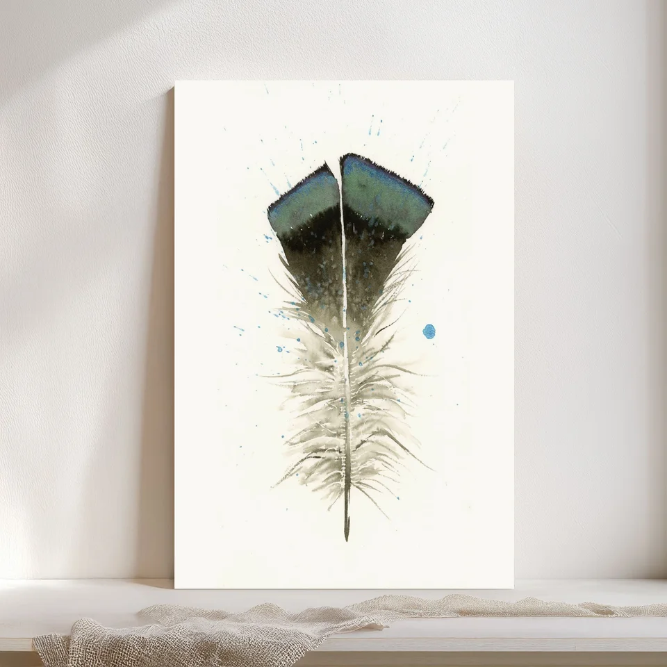 In this painting, I used soft blues and rich blacks to bring the feather to life, allowing the delicate transitions and splatters to create a sense of harmony and peace. The gentle blend of colors and subtle strokes suggest movement… read more