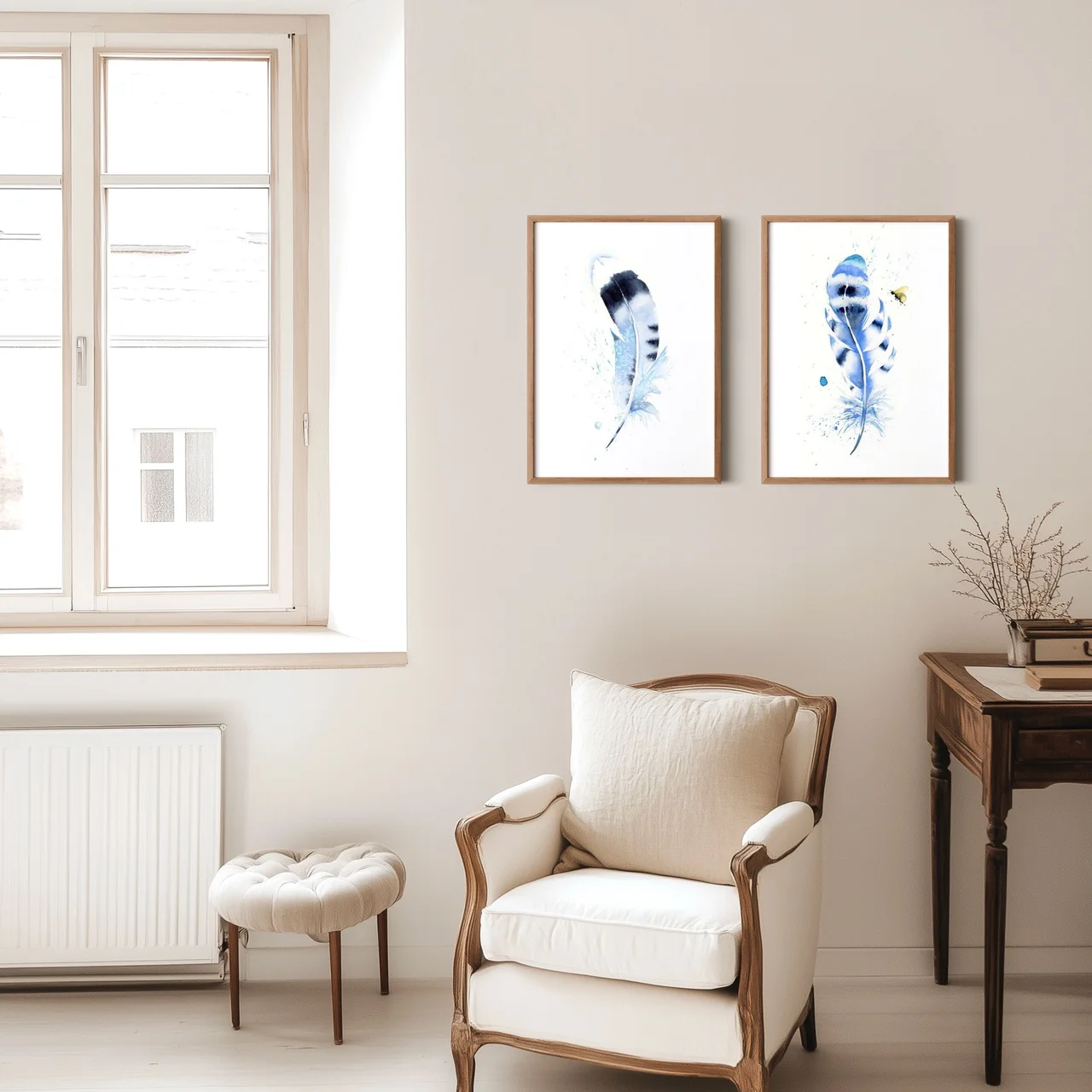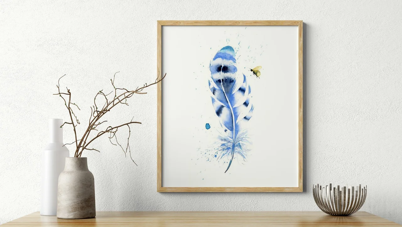 In creating this painting, I use soft blues, deep indigos, and light washes of teal to convey a sense of grace and gentle strength. The feather, with its subtle, fluid transitions and delicate splatters, signifies the delicate yet resilient nature… read more
