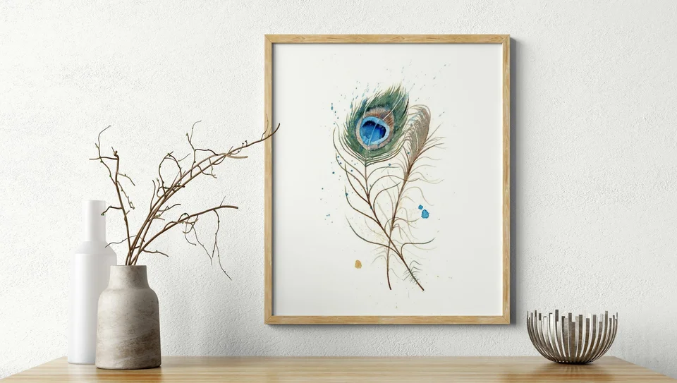 Creating this painting, I carefully chose hand-made pigment Rocky Mountain #5 to capture the vibrant blues and greens of the peacock feather, allowing each tone to flow and blend seamlessly with soft, sweeping brushstrokes. The splashes and drips add a… read more