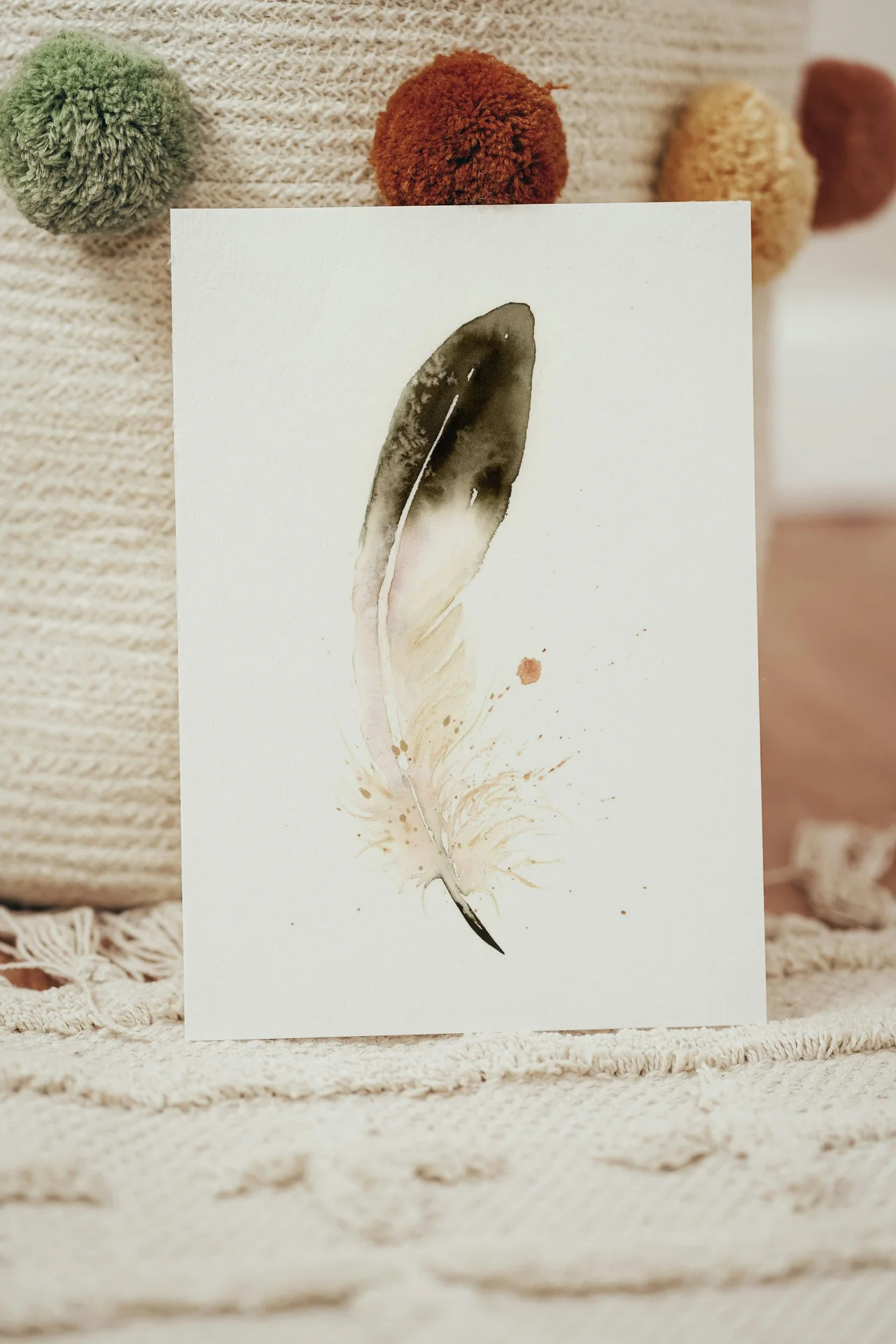 I wanted to capture a sense of calm and focus using the earthy hues of my hand-made pigment, Rocky Mountain #5. The feather’s soft, muted browns gently transition into lighter shades, with a few deliberate splatters adding a touch of… read more