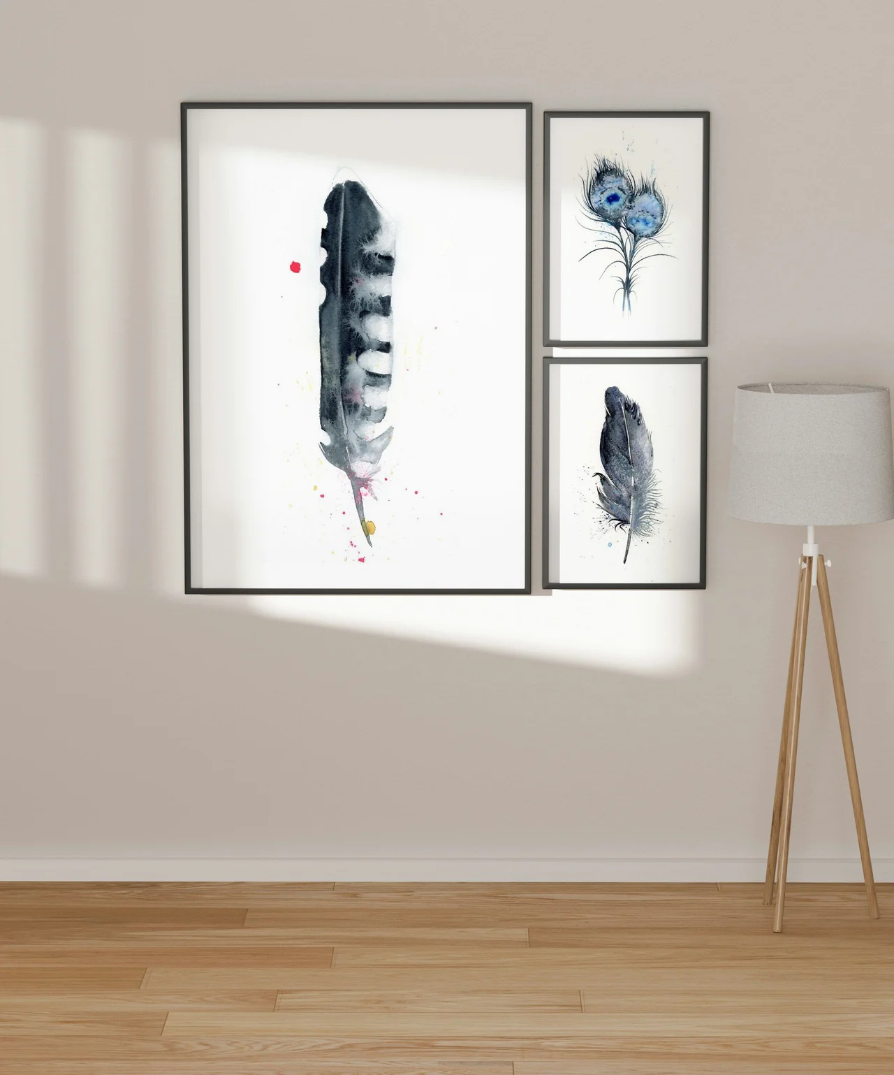 In this painting, I used soft washes of black and white to create a feather that feels both delicate and strong. The gentle transitions and layering give the piece a calming flow, while the splatters of pink and yellow add a touch of warmth and spontaneity. Painting this allowed me to convey a sense of gentle resilience, evoking a calm embrace that feels soothing to the soul. — Shayna, November 2022