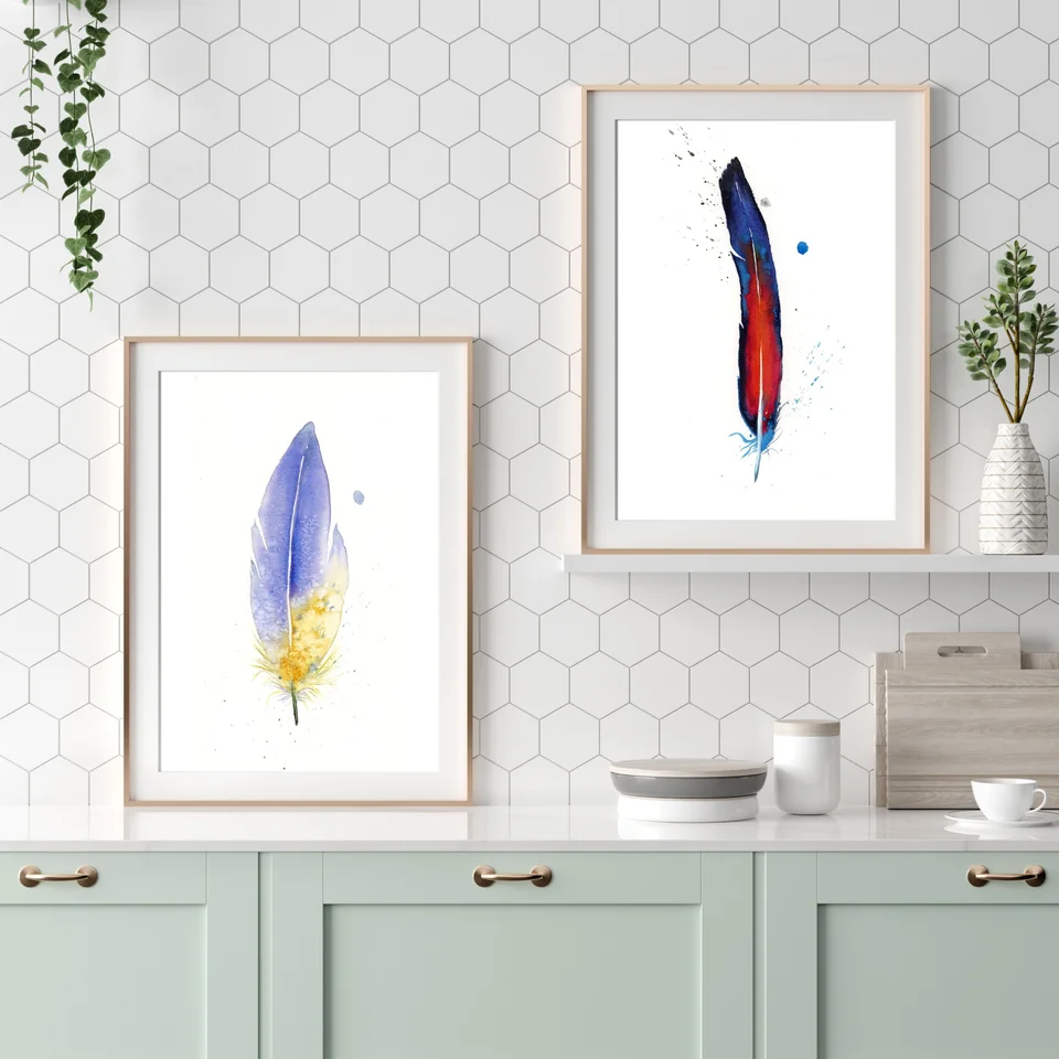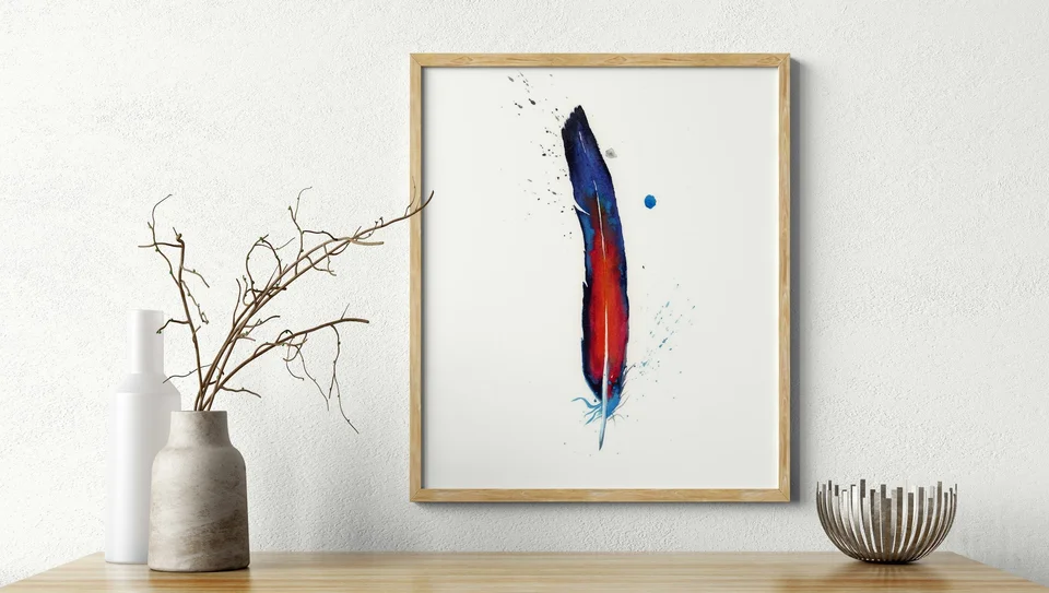 In this piece, I embraced the vibrant interplay of deep blues and fiery reds, allowing them to flow and merge with a gentle touch. The feather's edges are softly blurred, creating a sense of movement and grace, while the splatters… read more
