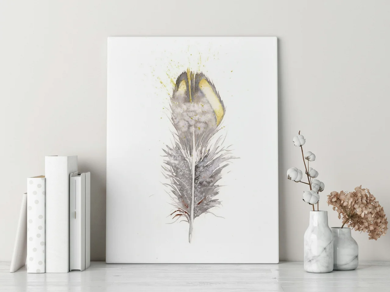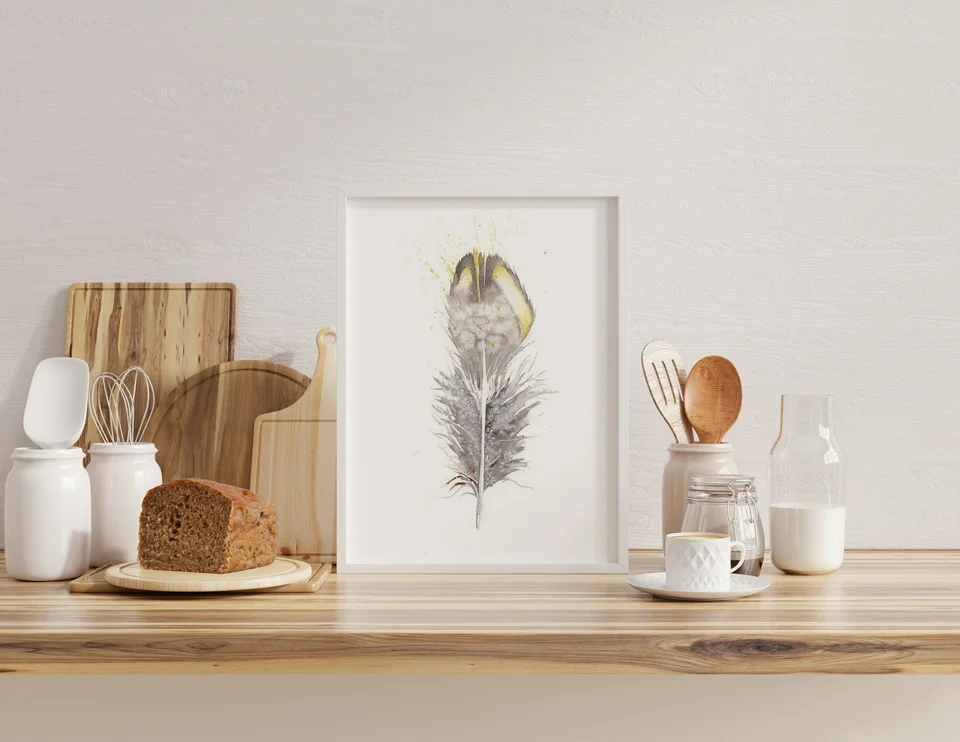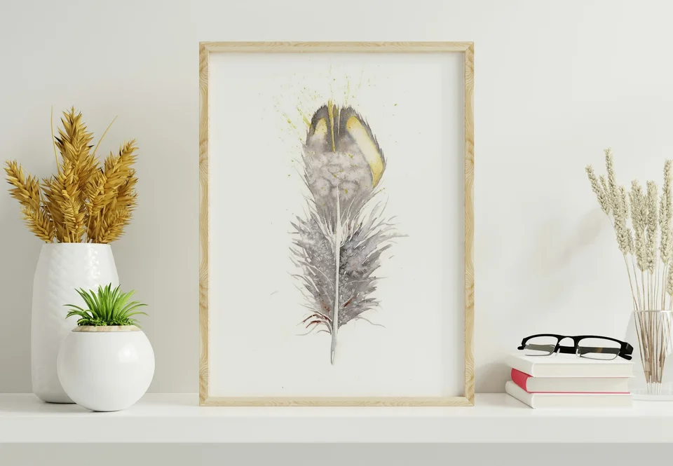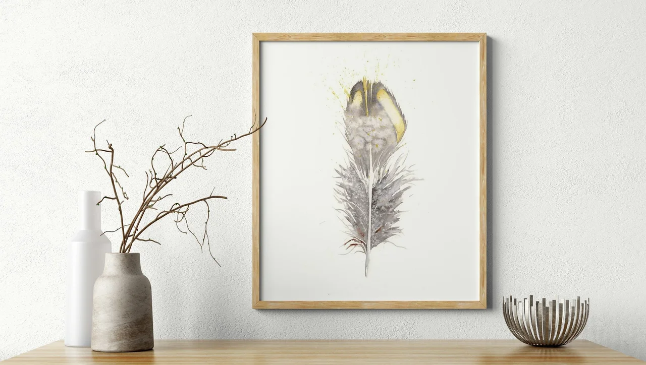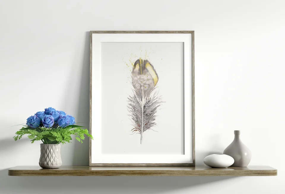 In this painting, I used soft grays and gentle yellows to create a feather that feels both delicate and strong. The watercolor technique allowed me to blend the colors seamlessly, with subtle splatters and drips adding a sense of spontaneity… read more