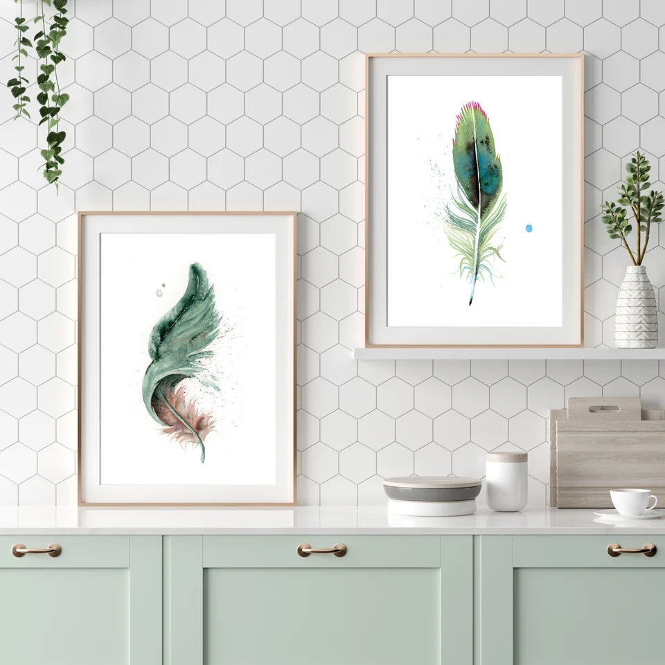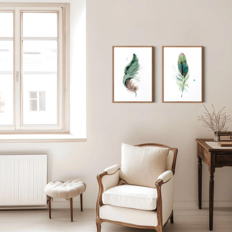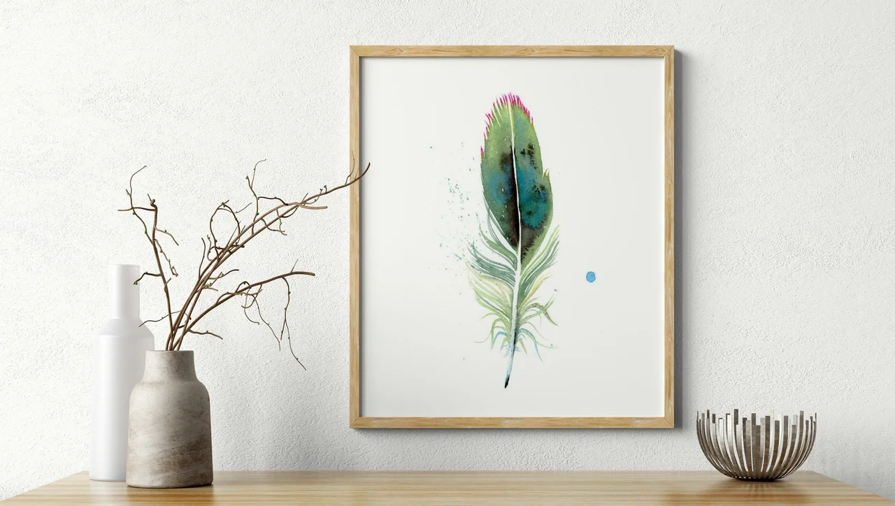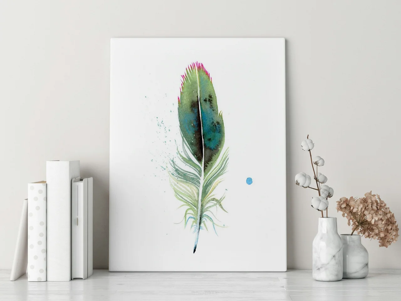 In this painting, I used a blend of deep greens and blues, accented with hints of pink at the tips, to create a feather that feels both delicate and strong. The soft transitions and gentle splatters around the edges suggest… read more