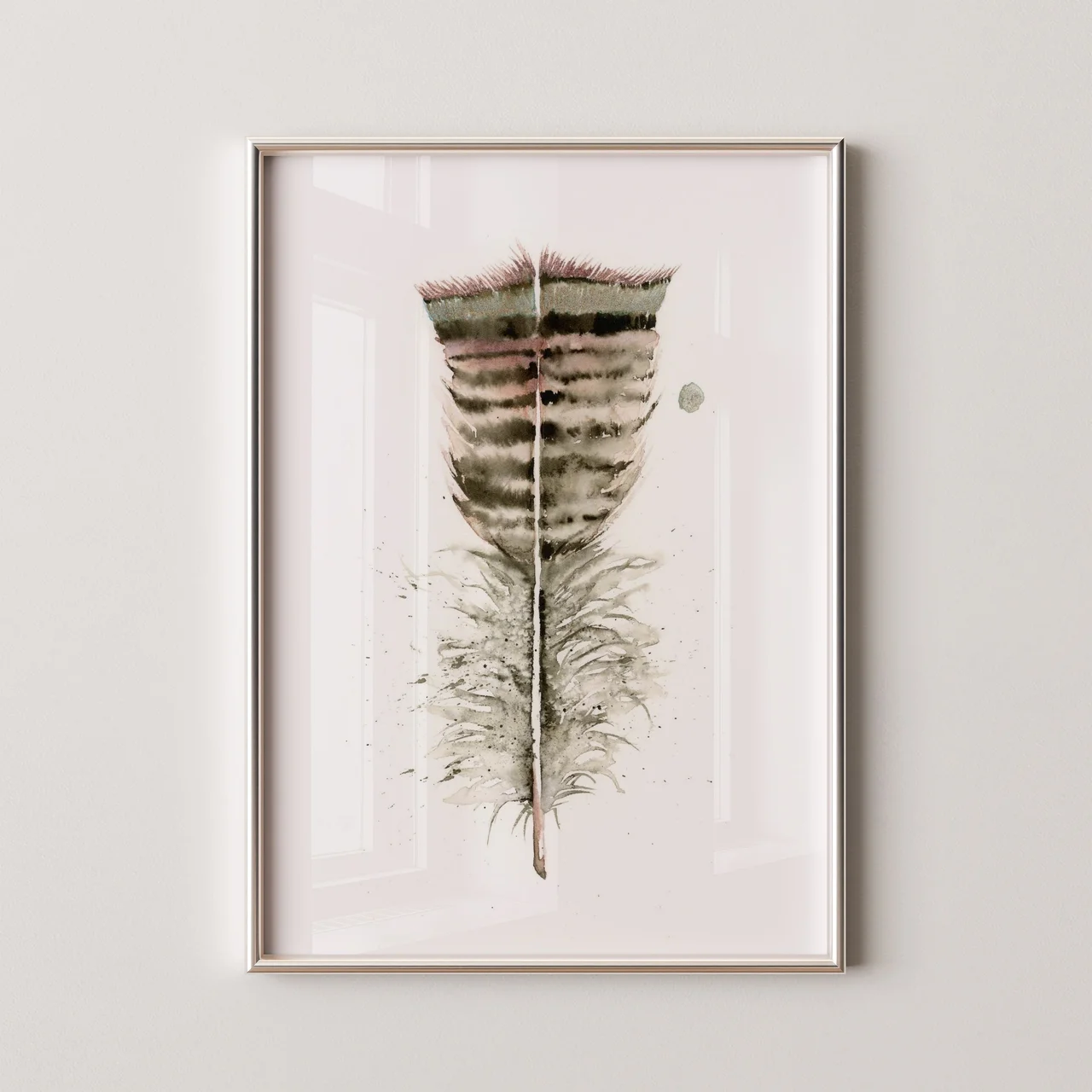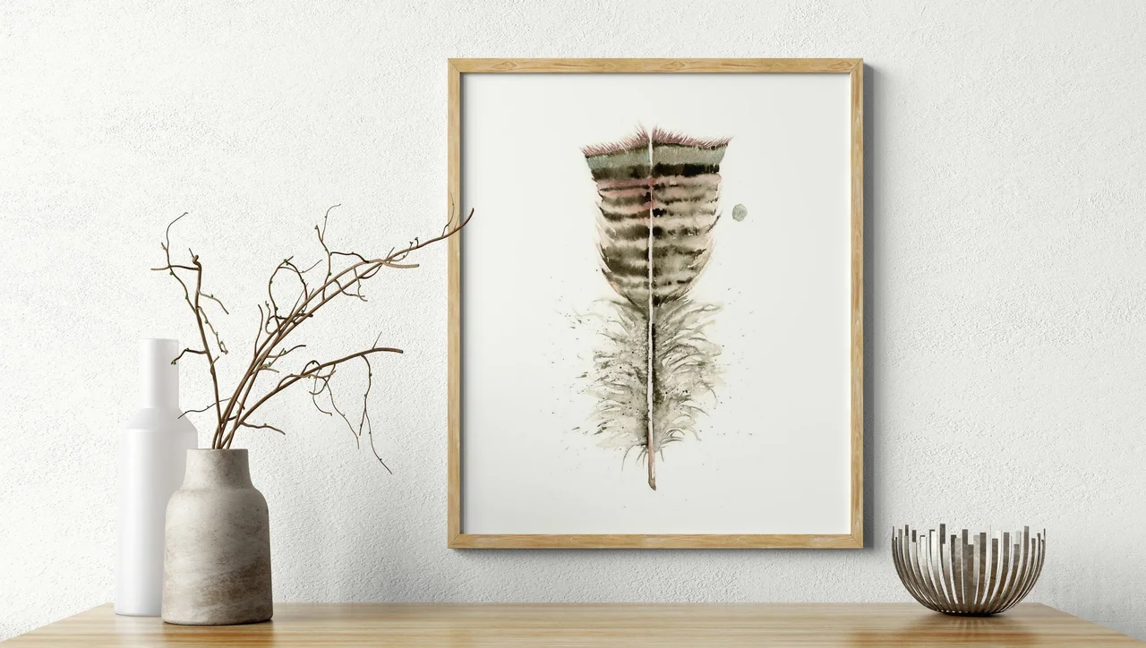 In this piece, I used soft earth tones, blending gentle browns and greens to create a sense of calm and strength. The feather's delicate edges and subtle splatters suggest movement and growth, while the layered brushstrokes add depth and texture.… read more