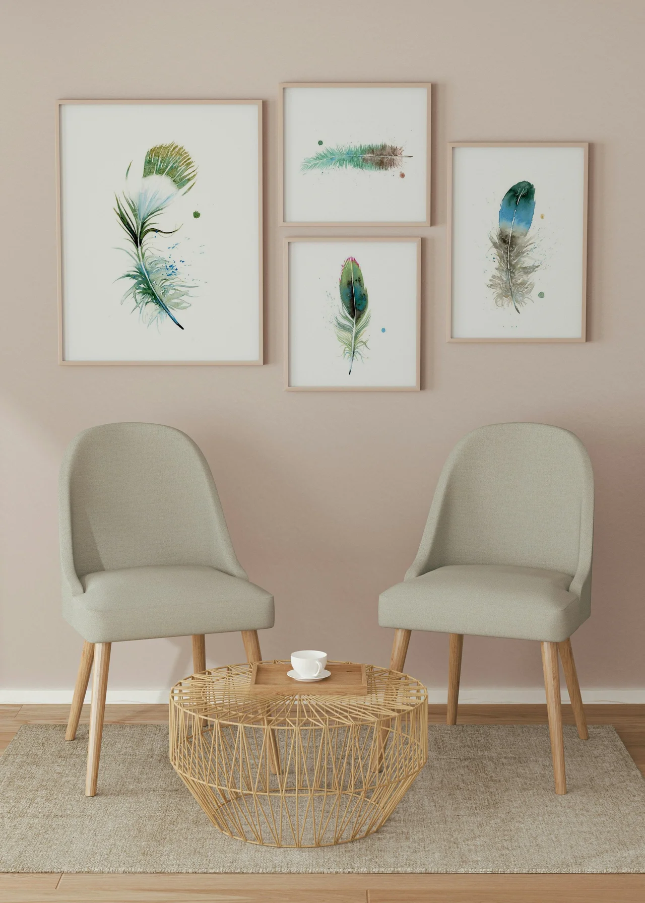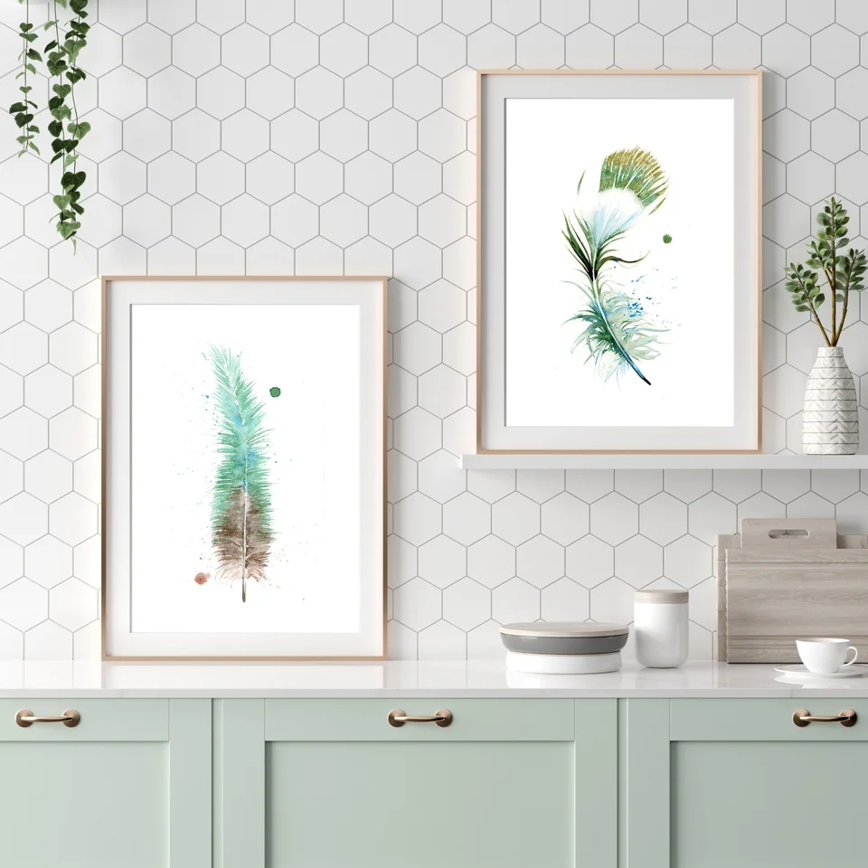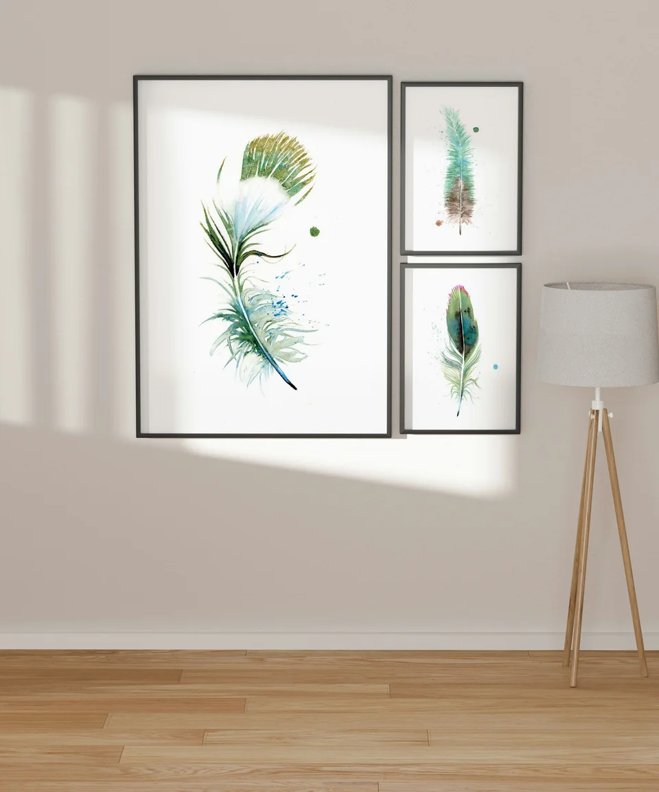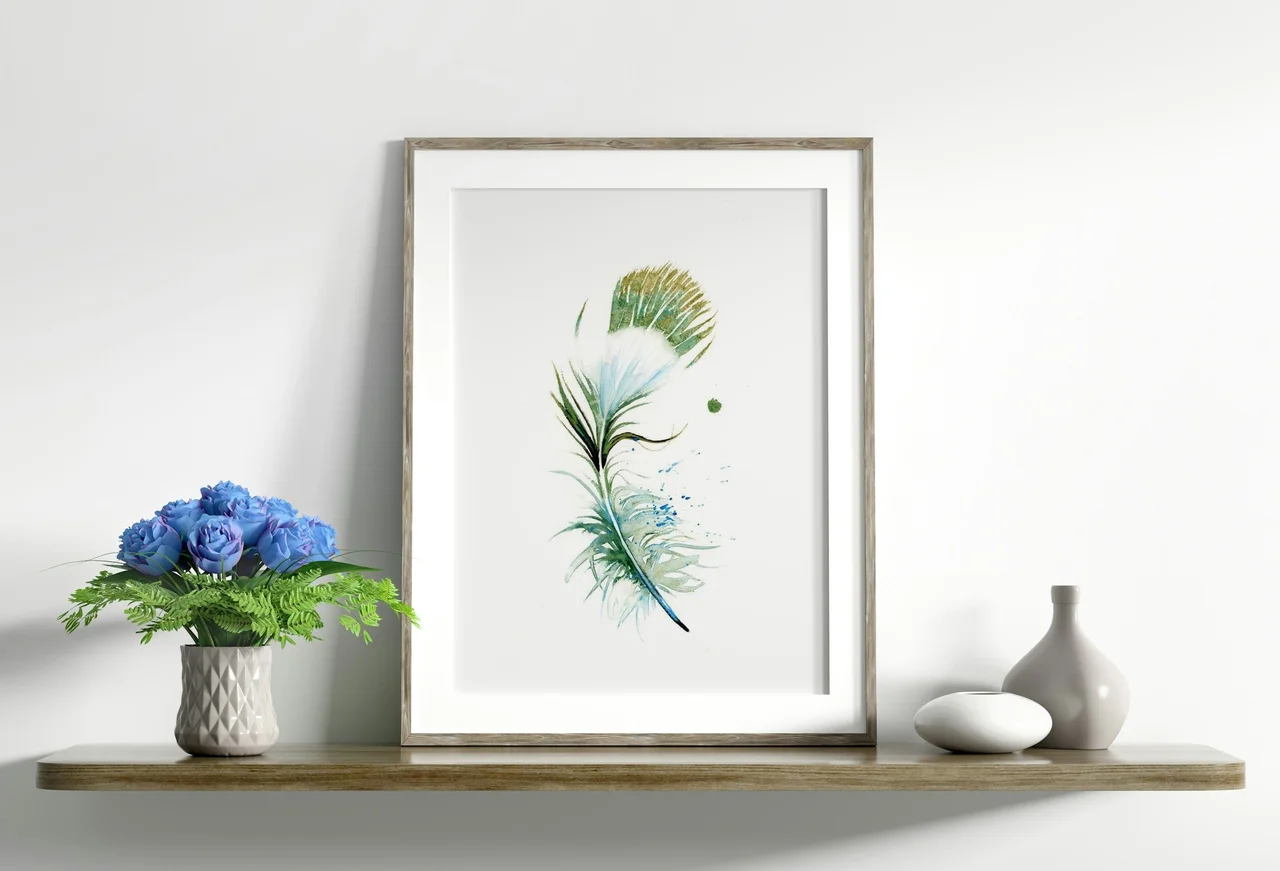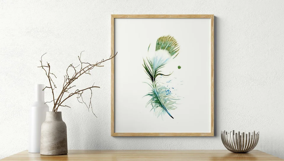 In this painting, I used soft greens and blues to create a gentle, calming effect, with delicate transitions that flow seamlessly from one hue to the next. The feather's form is defined by light, airy brushstrokes, and the subtle splatters… read more