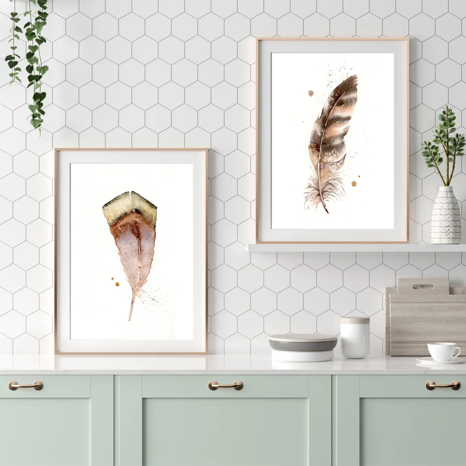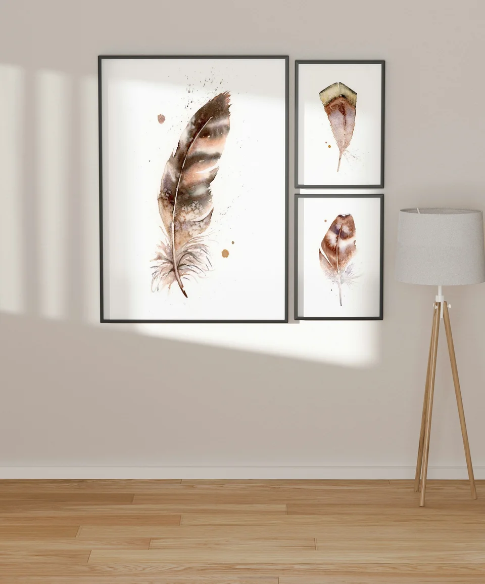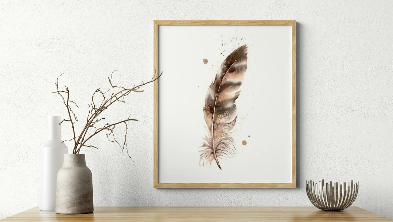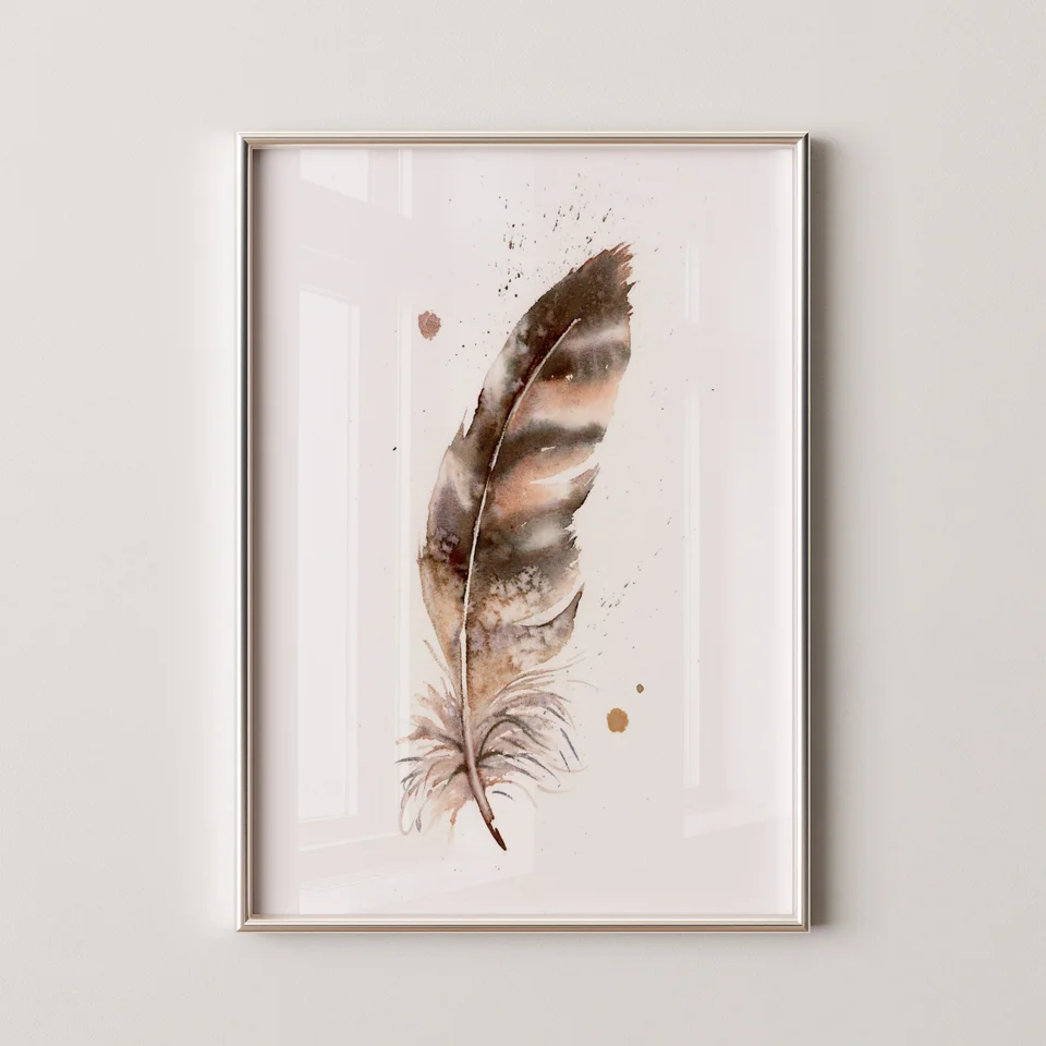 In this painting, I used the hand-made pigment Rocky Mountain #6 to create a warm, earthy palette that flows gently across the feather's form. The soft transitions and delicate layering of browns and grays capture a sense of timelessness, while the subtle splatters and drips add a touch of spontaneity. As I painted, I felt a deep connection to the past, honoring the quiet beauty and significance of nature's simple gifts. — Shayna, June 2025