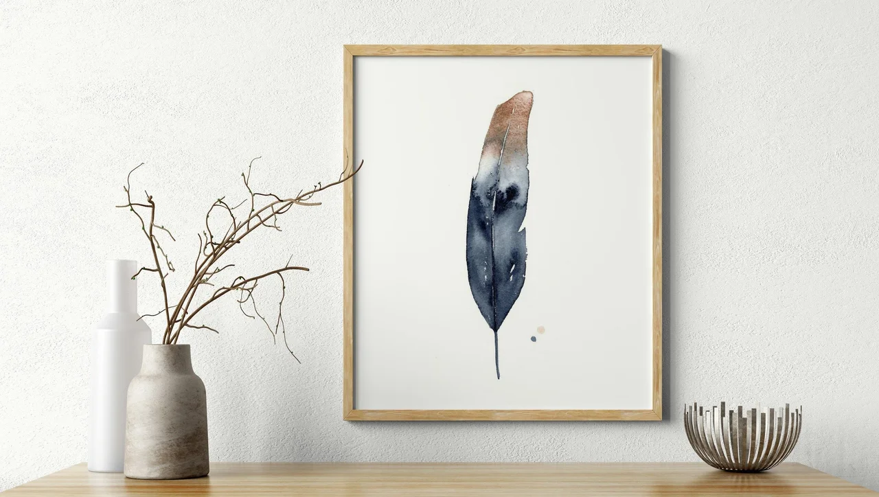 In this piece, I used soft, warm browns and deep blues to create a gentle transition, capturing the essence of a feather's elegance. Each brushstroke was deliberately layered to allow the colors to blend seamlessly, creating a sense of calm movement that reminds us of simple joys. As I painted, I felt a quiet assurance in the subtle drips and delicate edges, inviting serenity and a sense of new beginnings to anyone who gazes upon it. — Shayna, January 2023