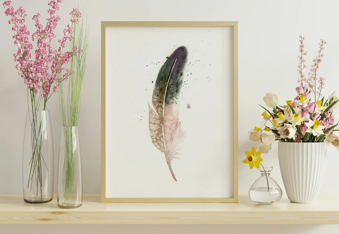 This original watercolor is 5" x 10". The Saunders Waterford 140# watercolor paper is mounted on a wood panel. Finished with archival spray varnish and hand buffed with cold wax medium. Custom framed and ready to hang.