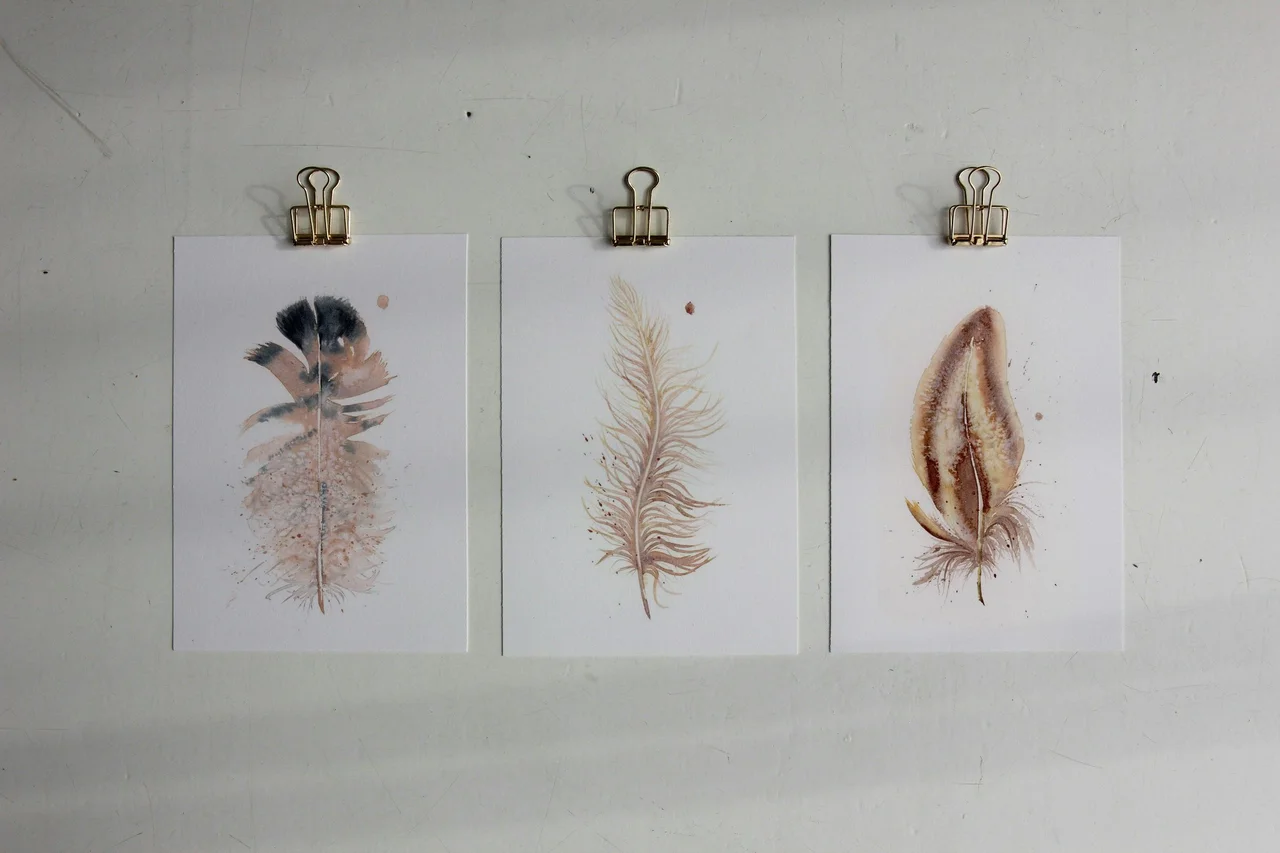 In this painting, I used soft, earthy tones of beige and brown to create a gentle, calming effect. The delicate feather is painted with fine, flowing brushstrokes that give it a sense of lightness and movement, while the subtle splatters… read more