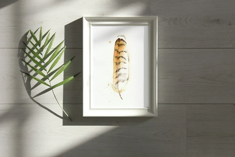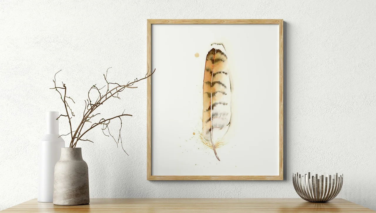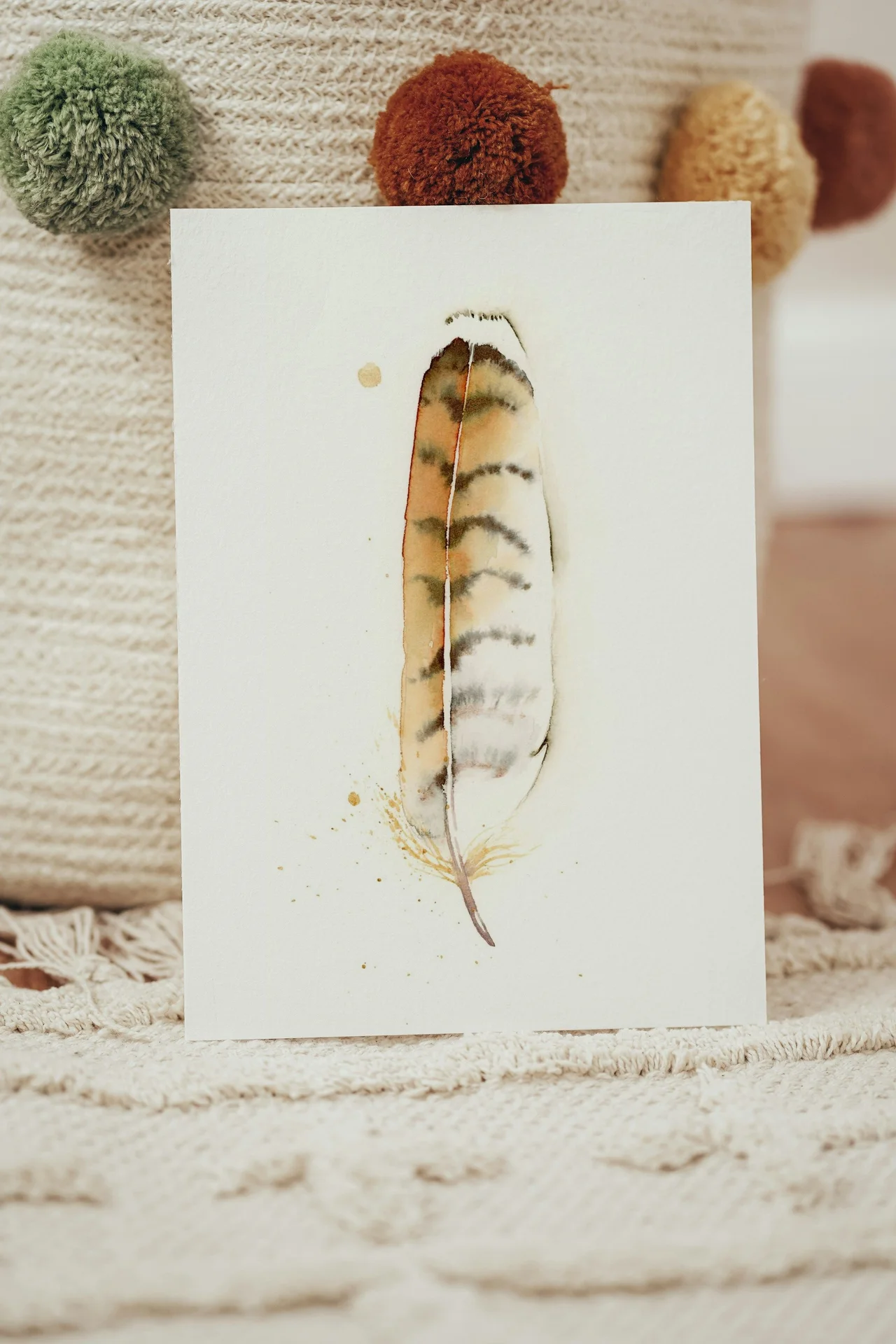 This original watercolor is 5" x 10". The Saunders Waterford 140# watercolor paper is mounted on a wood panel. Finished with archival spray varnish and hand buffed with cold wax medium. Custom framed and ready to hang.