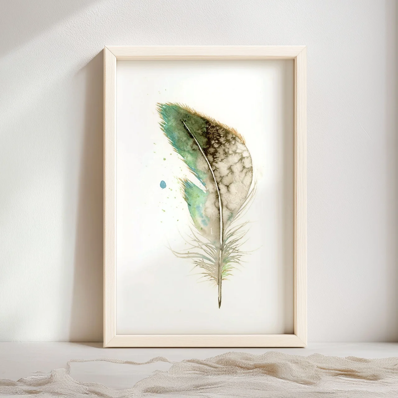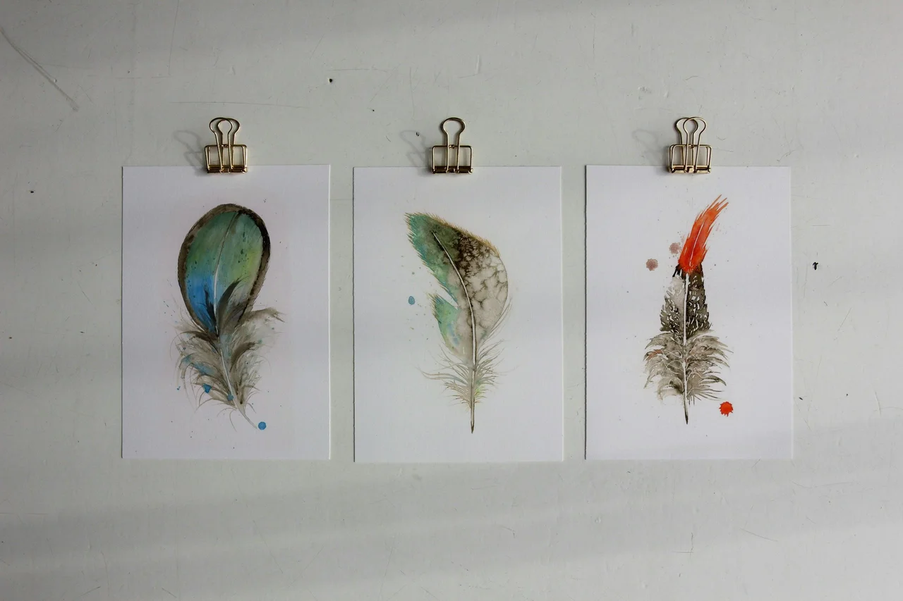 In this painting, I used soft greens and earthy browns to create a gentle, natural feel, allowing the feather to seem almost weightless against the white background. The delicate transitions and subtle layering of watercolor give the feather a sense… read more