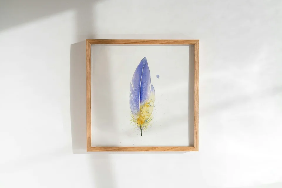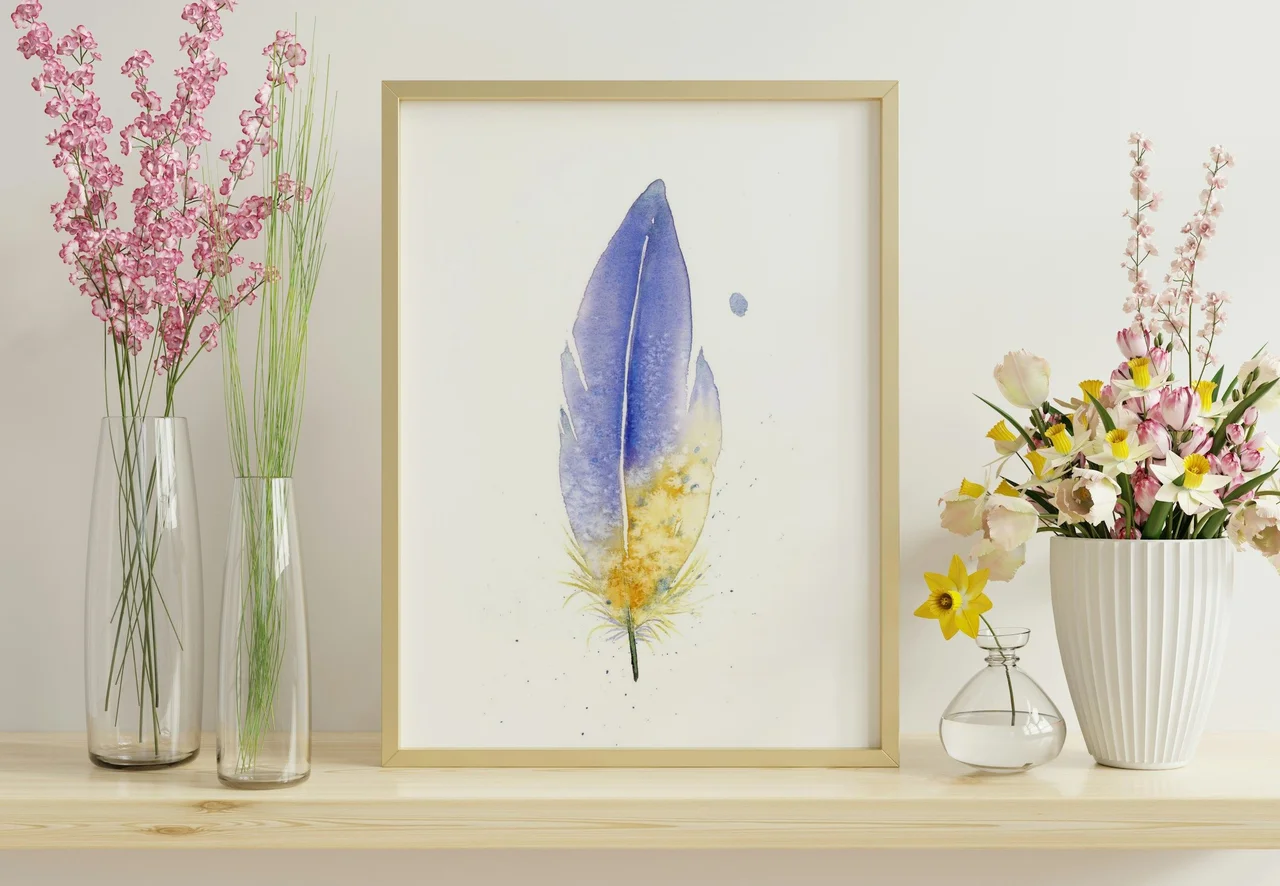 This original watercolor is 5" x 10". The Saunders Waterford 140# watercolor paper is mounted on a wood panel. Finished with archival spray varnish and hand buffed with cold wax medium. Custom framed and ready to hang.