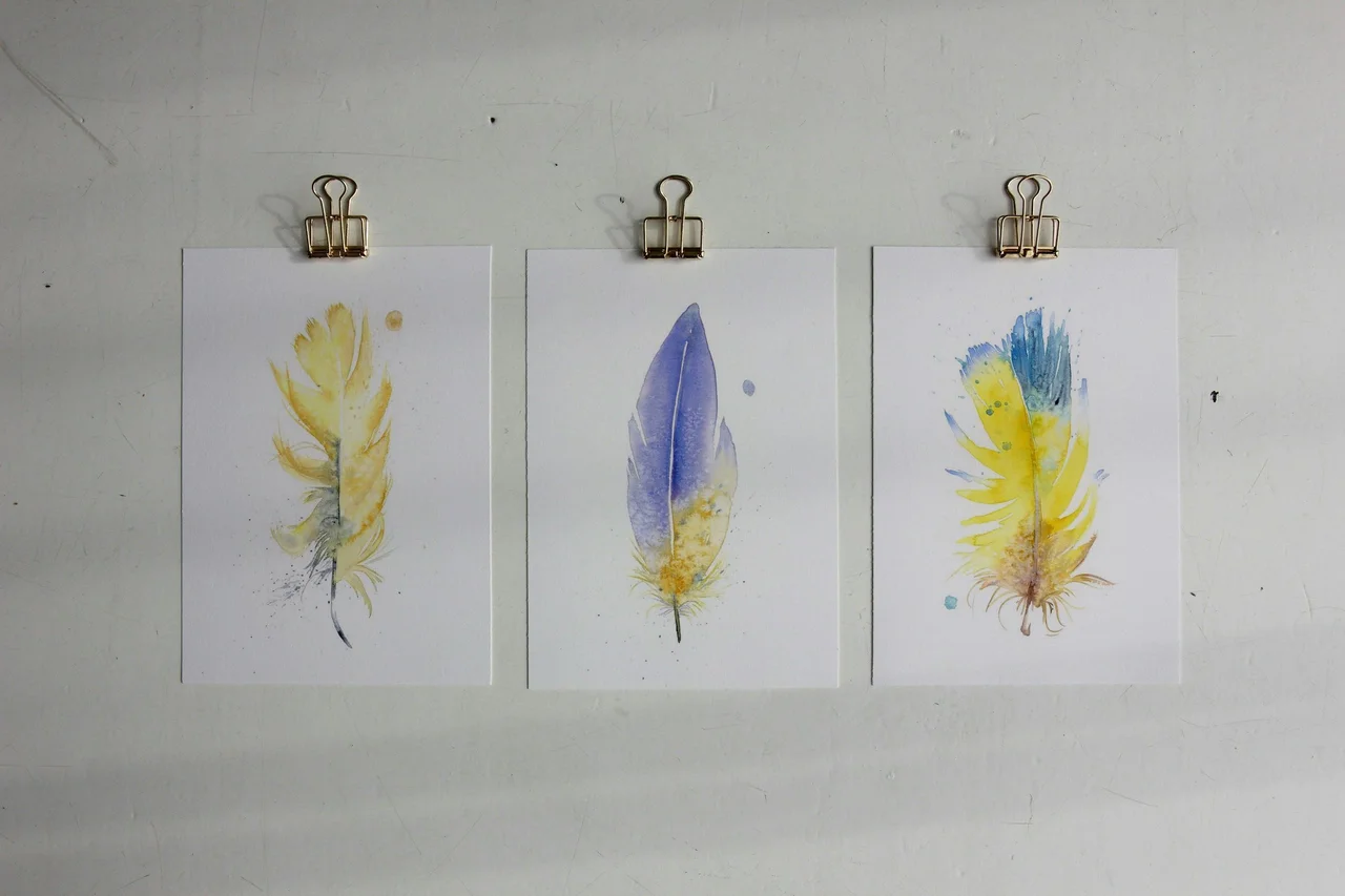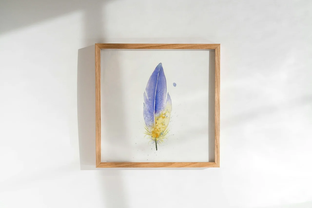 I chose a palette of deep blues and warm yellows to create a feather that feels both delicate and strong. The gentle transitions and soft blends between colors reflect a sense of calm, while the bold strokes and subtle splatters… read more