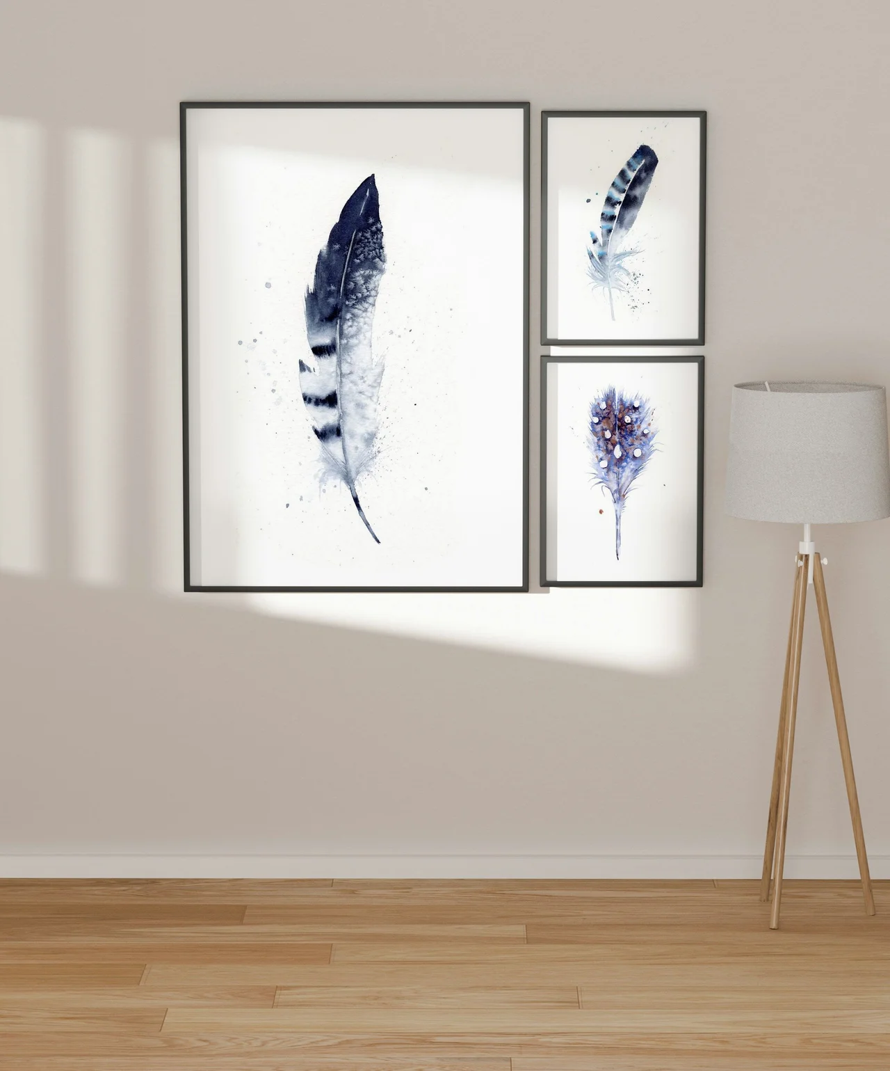In this painting, I chose soothing shades of deep indigo to create a serene and calming feather against a crisp white background. I focused on using soft transitions and delicate layering, allowing the colors to bleed and blend gently, which gives the feather a sense of gentle movement. The controlled splatters and drips add a playfulness that leads the viewer's eye naturally, suggesting a quiet path forward and a feeling of gentle support. — Shayna, February 2023