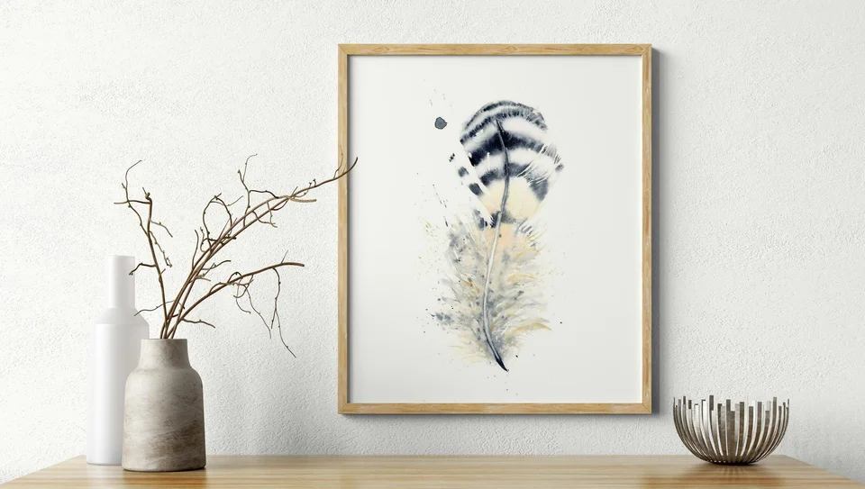 In this painting, I used soft, muted tones of gray and beige to create a sense of calm and balance. The feather's delicate structure is highlighted by gentle transitions and subtle layering, with brushstrokes that flow naturally, capturing the essence… read more