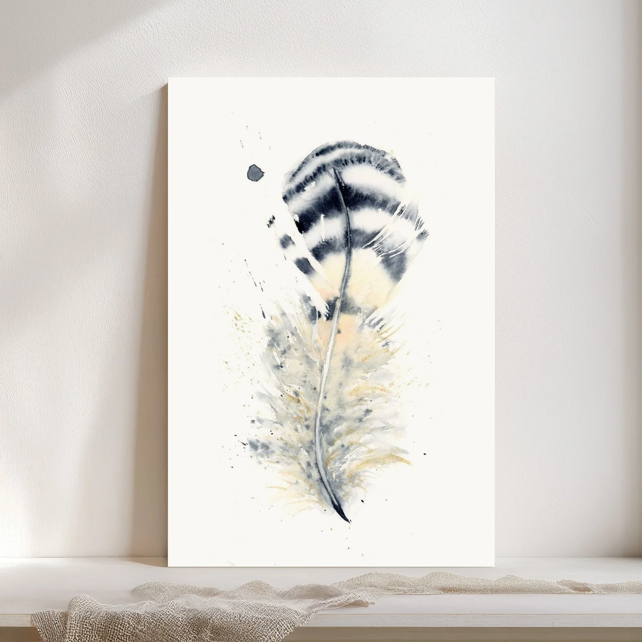 In this painting, I used soft, muted tones of gray and beige to create a sense of calm and balance. The feather's delicate structure is highlighted by gentle transitions and subtle layering, with brushstrokes that flow naturally, capturing the essence of lightness and grace. The splatters and drips add a touch of spontaneity, symbolizing resilience and the beauty of embracing life's imperfections. Through this piece, I wanted to convey a sense of inner strength and reliability, inviting viewers to find their own sense of peace and assurance. — Shayna, October 2025