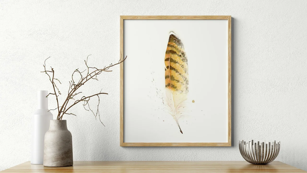 This original watercolor is 5" x 10". The Saunders Waterford 140# watercolor paper is mounted on a wood panel. Finished with archival spray varnish and hand buffed with cold wax medium. Custom framed and ready to hang.