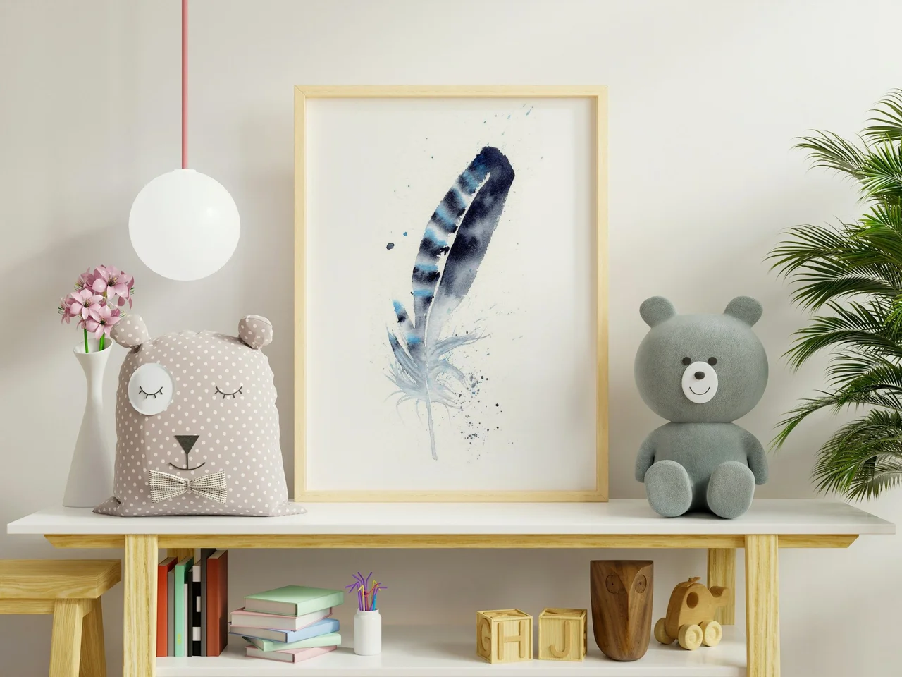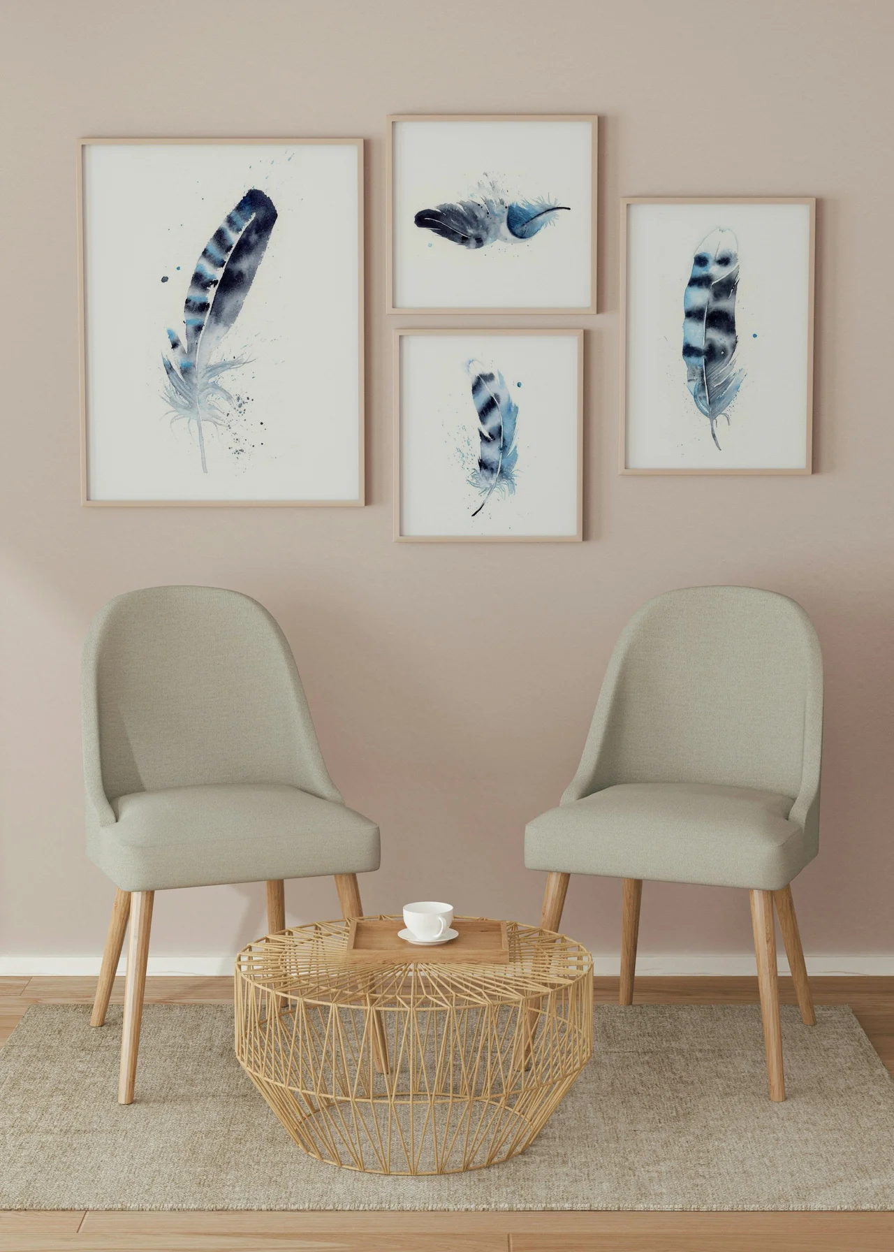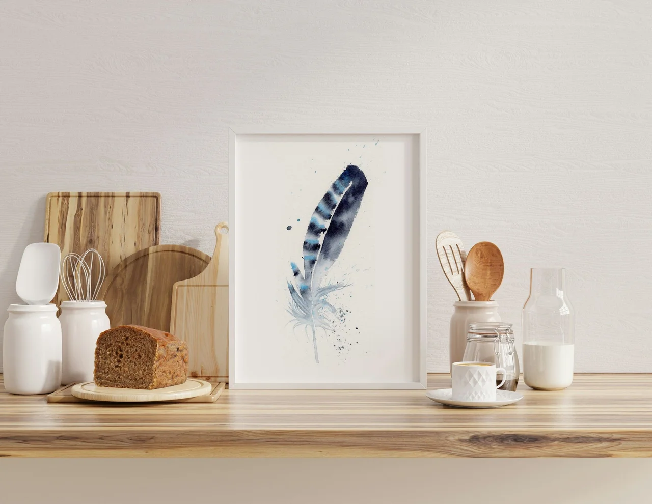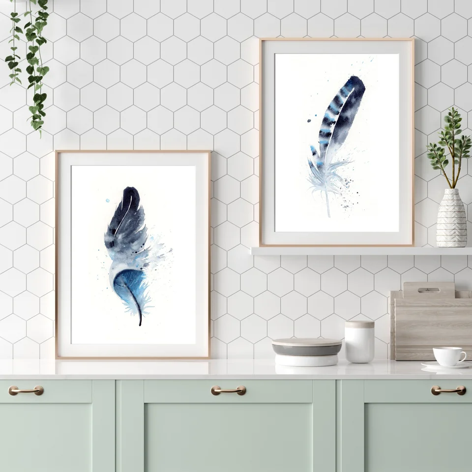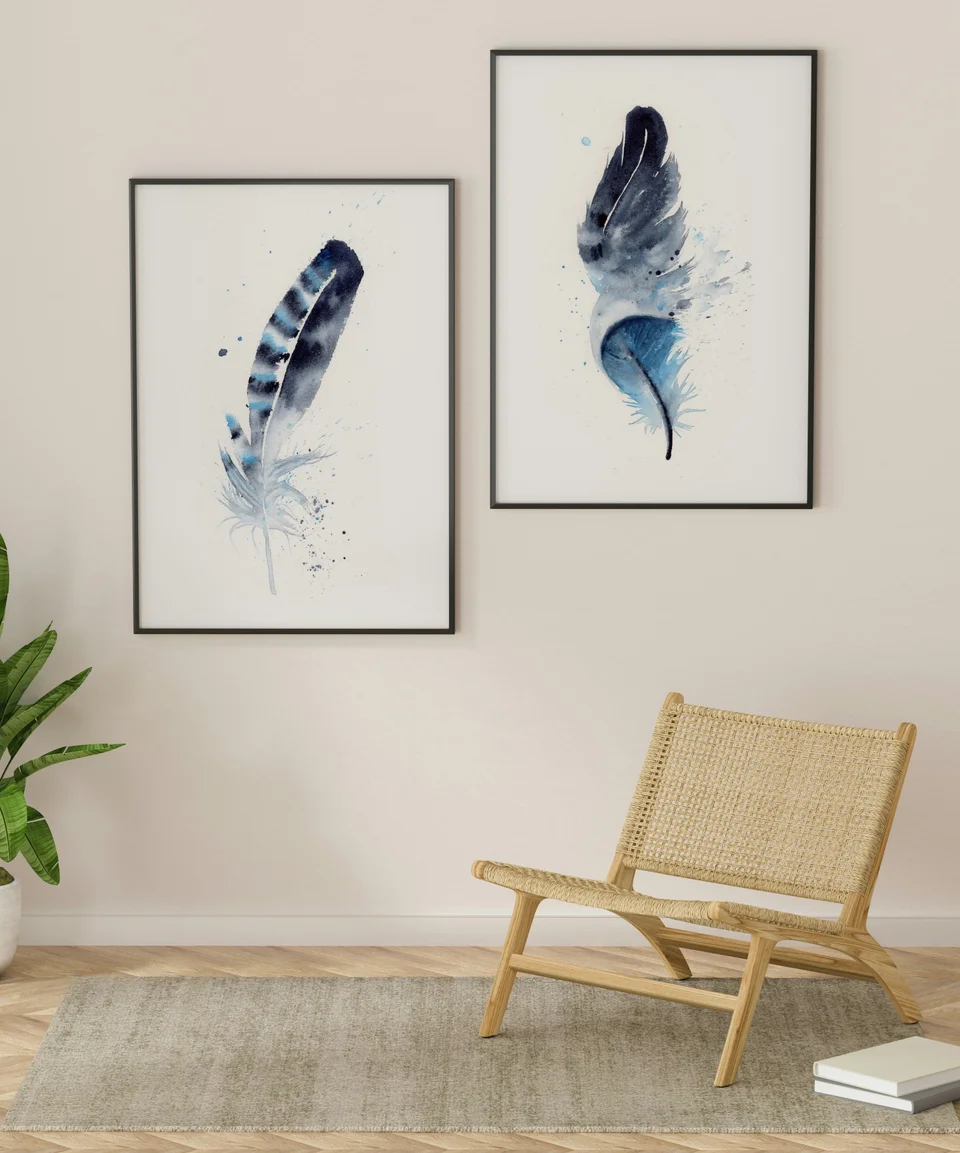 In creating this feather painting, I chose deep blues and soft grays to dance across the paper with gentle transitions and layers, creating a soothing contrast against the crisp white background. My brushstrokes are delicate and purposeful, allowing the feather's… read more