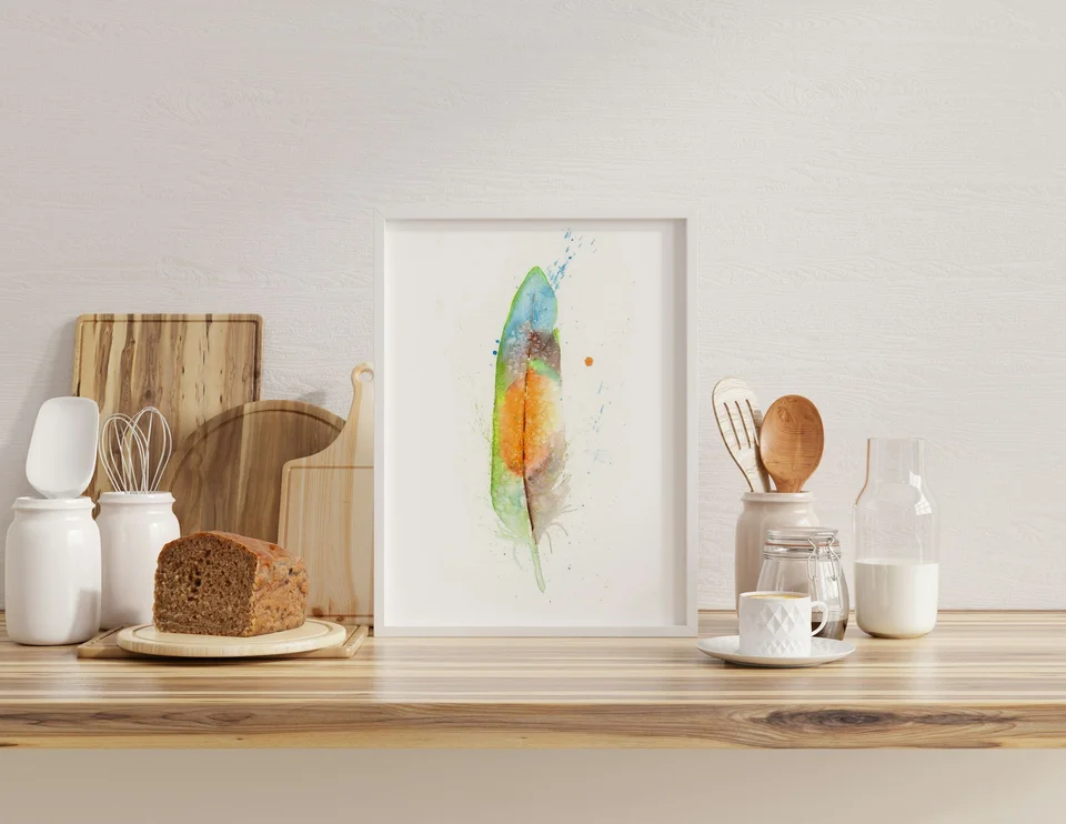 In this piece, I carefully layered hues of soft greens, vibrant oranges, and gentle blues to create a feather that speaks to both simplicity and elegance. Each brushstroke is intentional, capturing the natural flow and delicate edges that invite a… read more