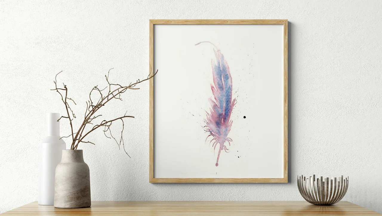 In creating this piece, I wanted to capture the gentle strength embodied in the soft blues and pinks. The feather's delicate form features subtle transitions and layers of color, with soft edges and slight splatters that add a sense of… read more