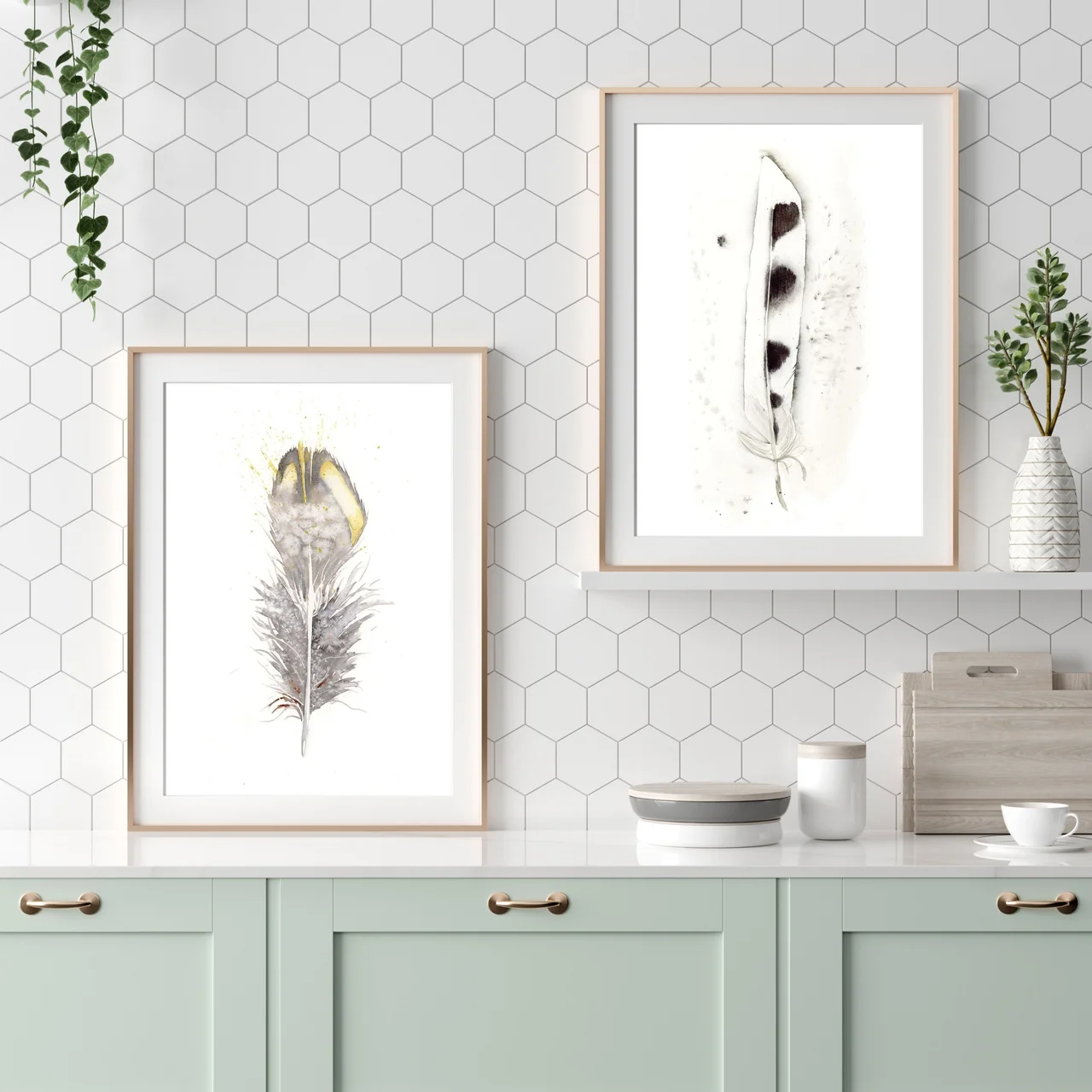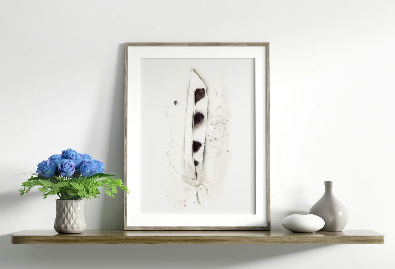 In creating this painting, I embraced the gentle dance of grays and soft blacks against the white background, letting the feather take center stage. I used delicate brushstrokes and subtle layering to capture the intricate patterns and natural curves, allowing… read more