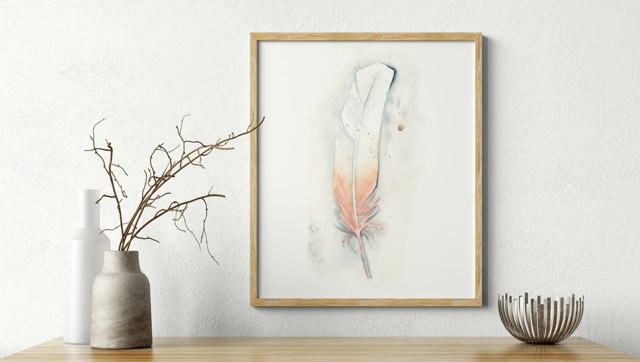 In this piece, I infused gentle pastels and earthy tones, letting soft pinks and subtle grays dance across the canvas to create a warm, inviting atmosphere. The delicate transitions and fluid brushstrokes capture a feeling of sincerity and calmness, while the faint splatters and drips add a touch of spontaneity and honesty. As I painted, I aimed to convey a sense of openness and reliability, hoping to invite viewers to find solace and peace in the simplicity of this feather's form. — Shayna, March 2023