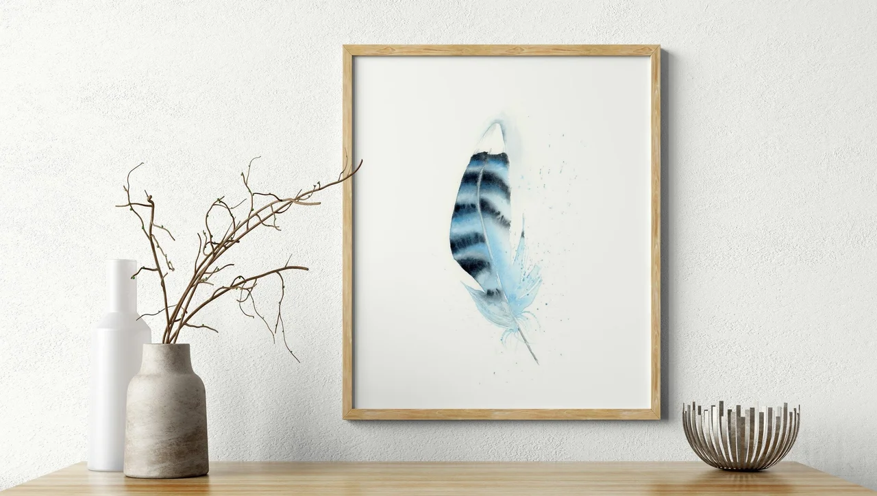 In this painting, I chose a delicate mix of soft blues and deep blacks to capture the essence of a single feather. Using gentle, flowing brushstrokes, I allowed the colors to bleed subtly into each other, creating smooth transitions that speak to the grace of nature. The intricate layering and the occasional splatters mimic the effortless movement of the feather, giving it a grounded yet airy feel that draws the viewer in. — Shayna, April 2023