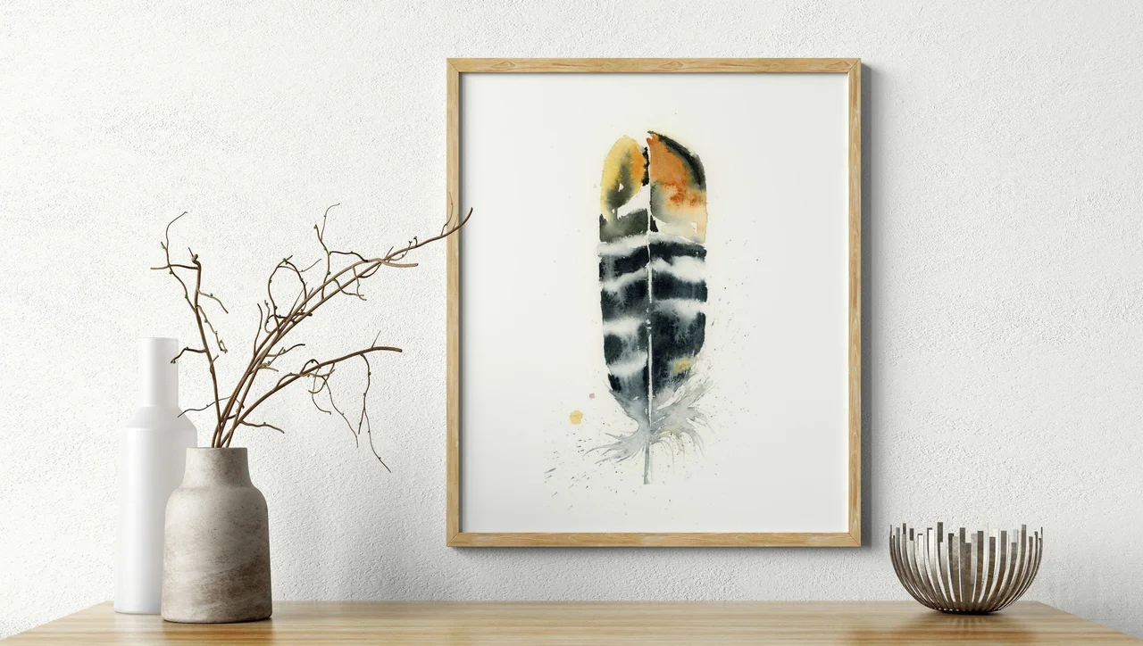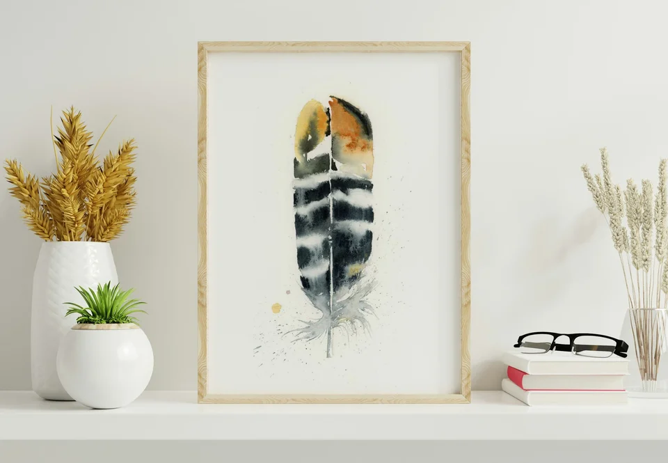 In this painting, I chose a soft blend of warm earth tones—golden yellow and rich browns—against a cooler backdrop of grays and blacks. I applied gentle brushstrokes, allowing the colors to transition smoothly, capturing the delicate essence of a feather. As I layered the washes, the subtle splatters and drips gave the piece movement and life. Through its balanced composition and soothing hues, I aimed to create a sense of calm and reassurance, inviting the viewer to feel supported and uplifted. — Shayna, April 2023