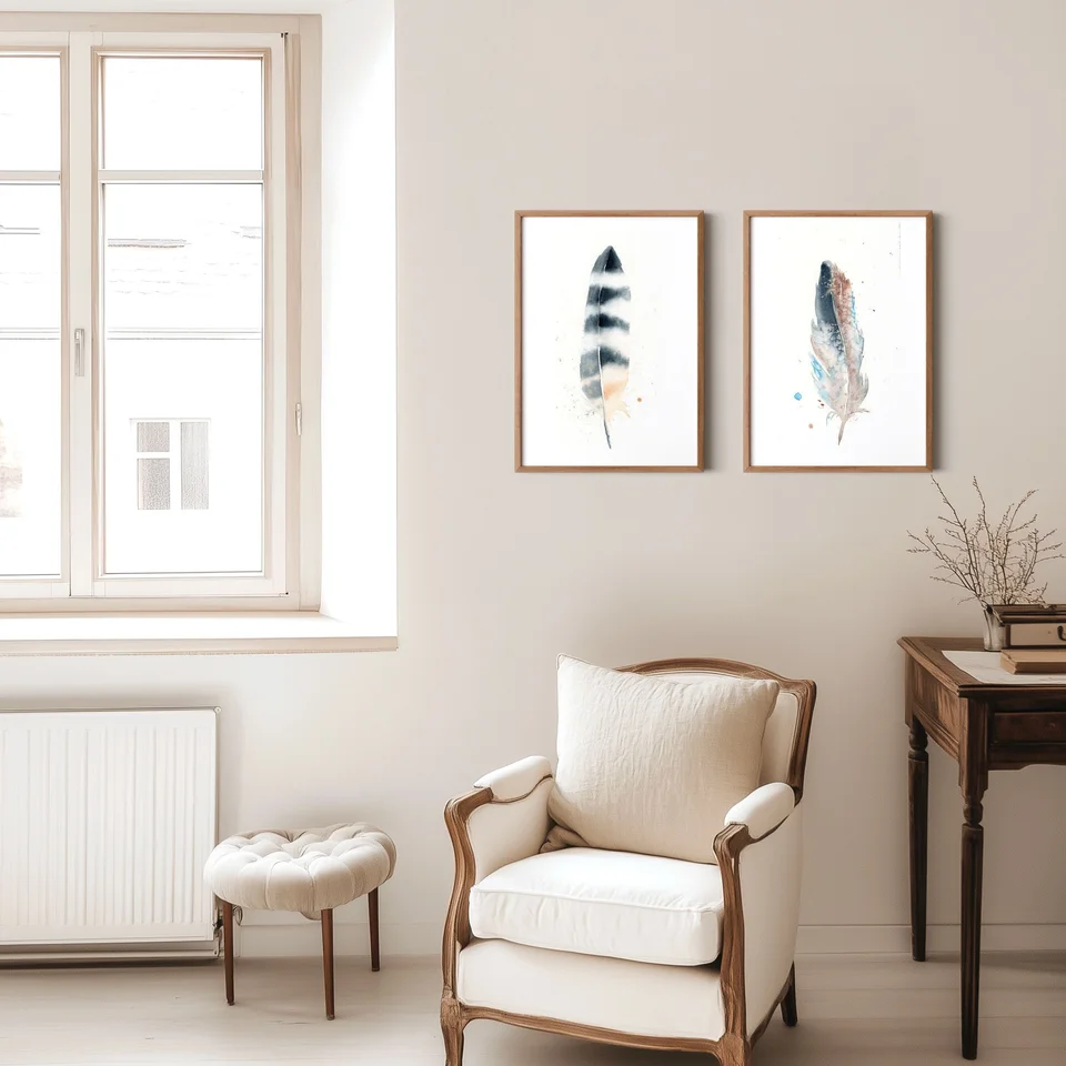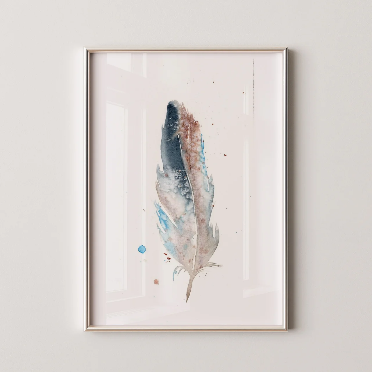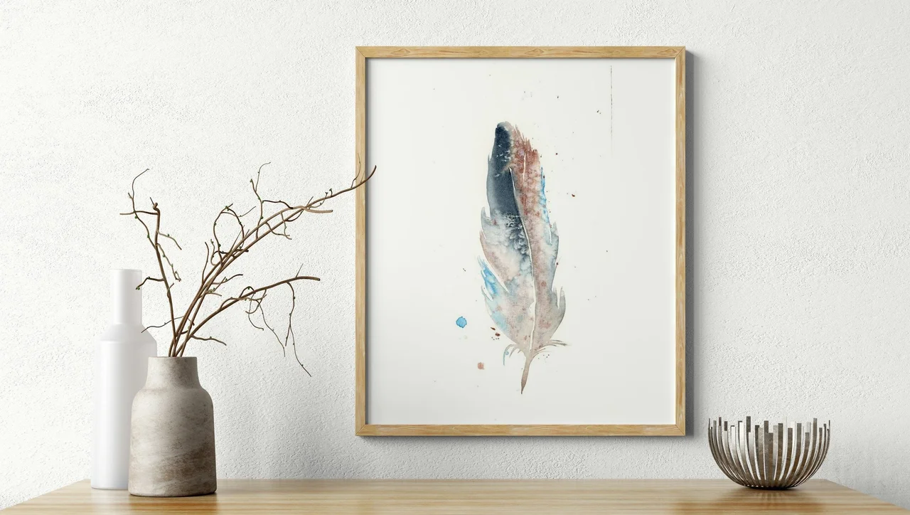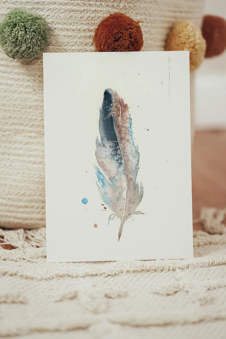 In this piece, I embraced a gentle palette of soft blues and warm browns to create a sense of calm and connection. I allowed the colors to blend and bleed organically, using delicate brushstrokes that suggest movement and life in the feather's form. My intention was to capture a feeling of serenity—something that invites you to pause and appreciate the simple beauty around us. — Shayna, May 2023