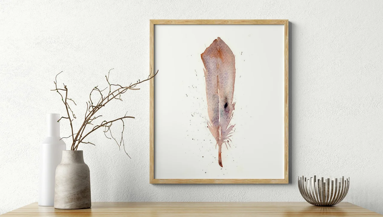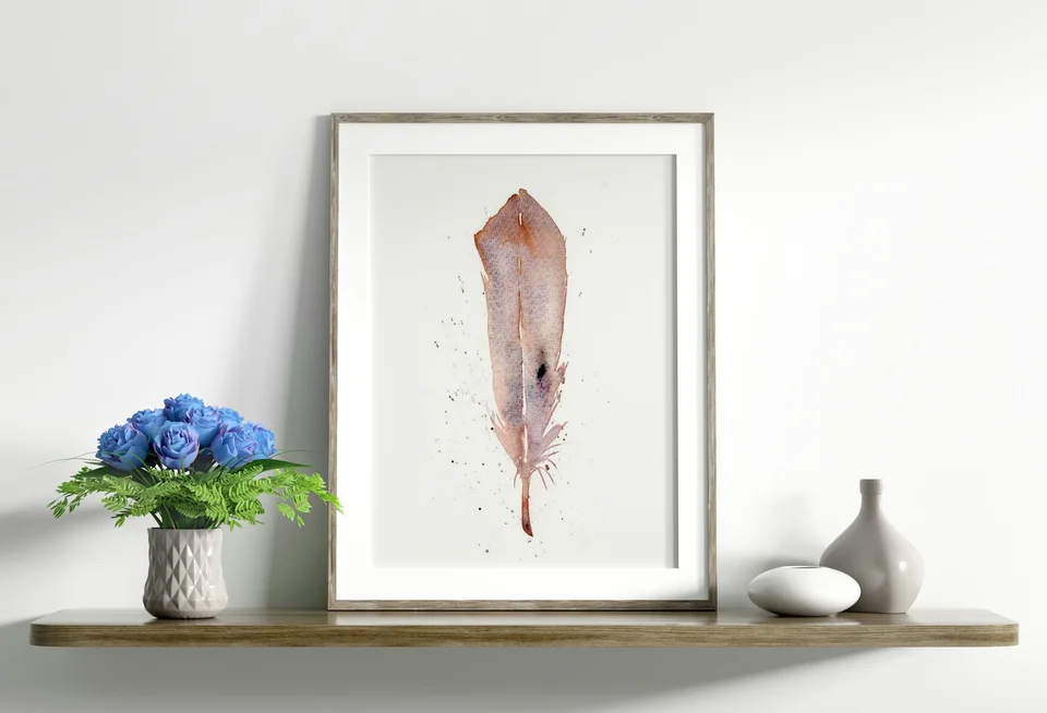 I gently let the watercolor flow across the paper, capturing the delicate essence of the feather with soft earth tones blended with hints of deep indigo and rust. My brushstrokes are subtle and intentional, creating smooth transitions between colors, while… read more