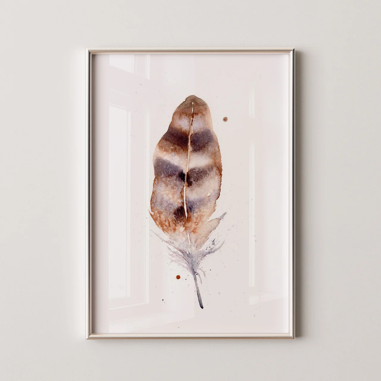 In painting this feather, I chose earthy browns and soft grays to create an organic feel, blending them gently to show the delicate layers within. My brushstrokes are light, letting the watercolor naturally spread and soak into the paper, adding a sense of movement and flow. Through these subtle transitions and shapes, I wanted to convey a sense of quiet strength and renewal, reminding us of life's gentle persistence. — Shayna, November 2022