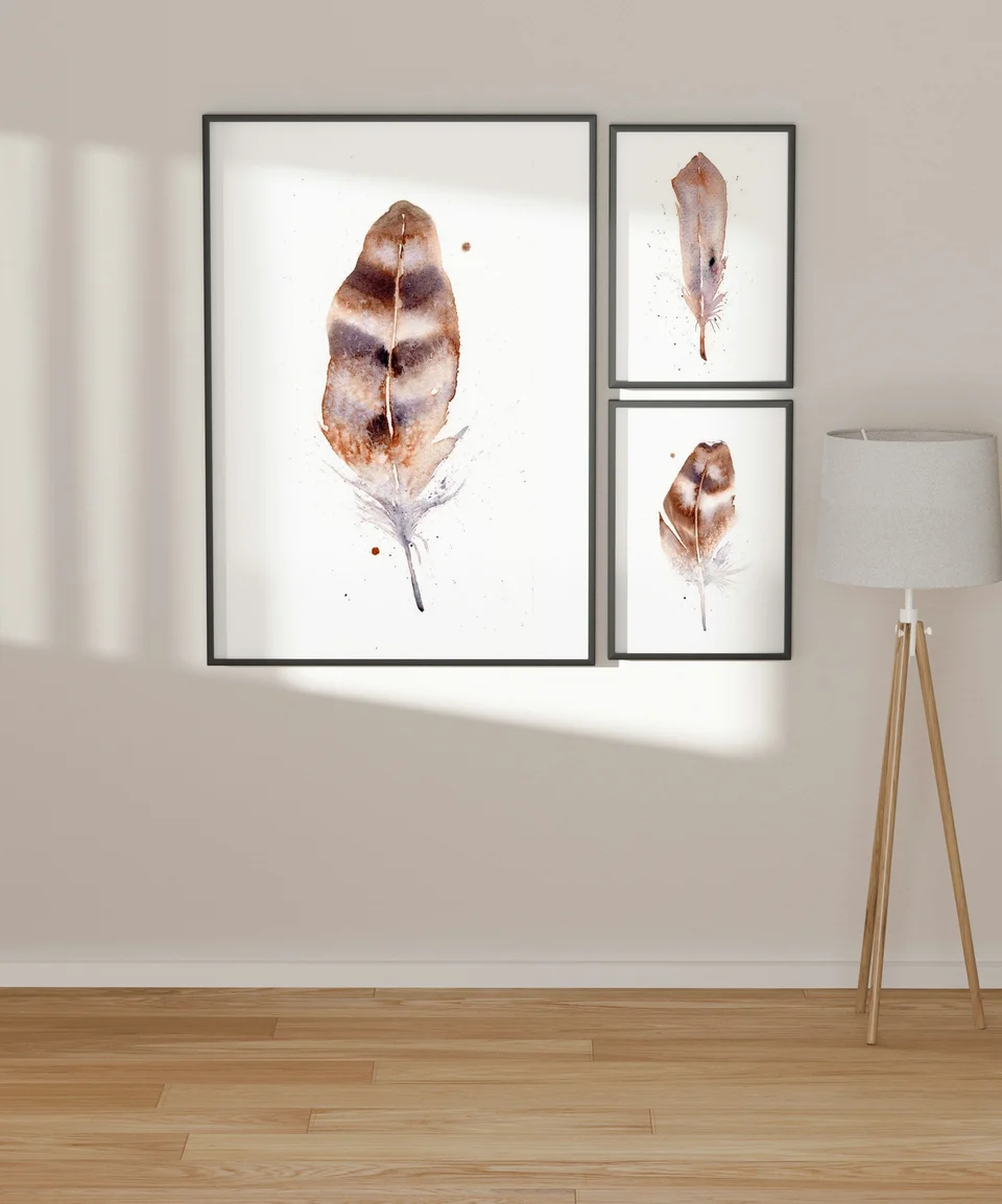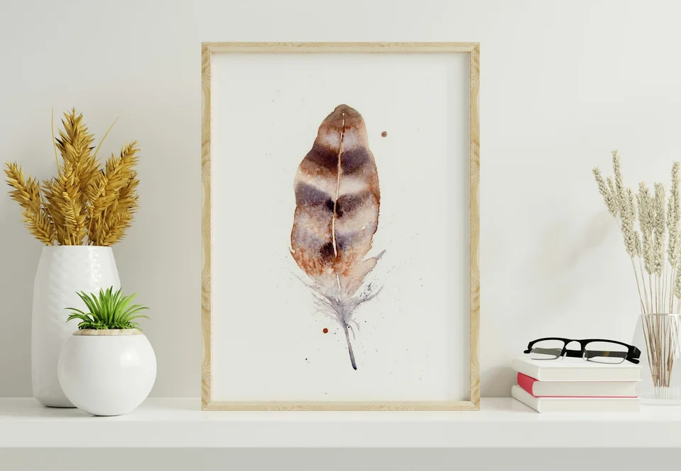In painting this feather, I chose earthy browns and soft grays to create an organic feel, blending them gently to show the delicate layers within. My brushstrokes are light, letting the watercolor naturally spread and soak into the paper, adding… read more