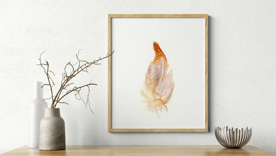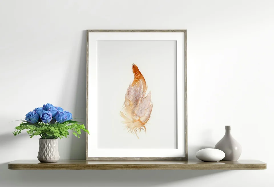 In this painting, I used warm, earthy browns and soft oranges to bring out the natural beauty of the feather. The gentle transitions and delicate layering of watercolor create a sense of grace and movement, while the soft edges and airy blending evoke both inward strength and subtle elegance. As I painted, I felt a deep connection to nature's resilience and the quiet determination that each stroke conveys, inviting the viewer to find their own quiet confidence and embrace their unique journey. — Shayna, June 2023