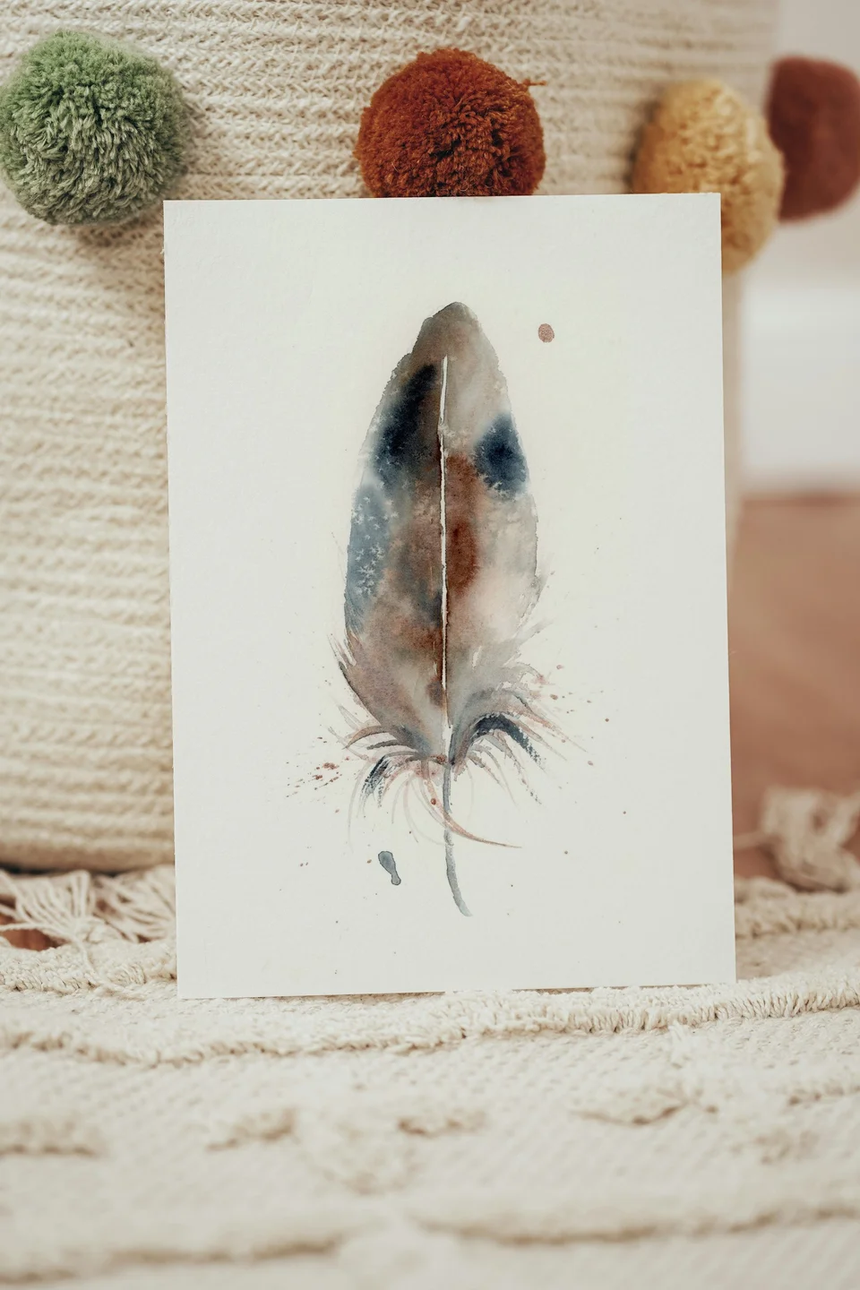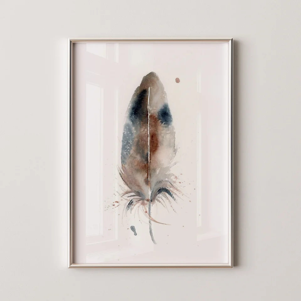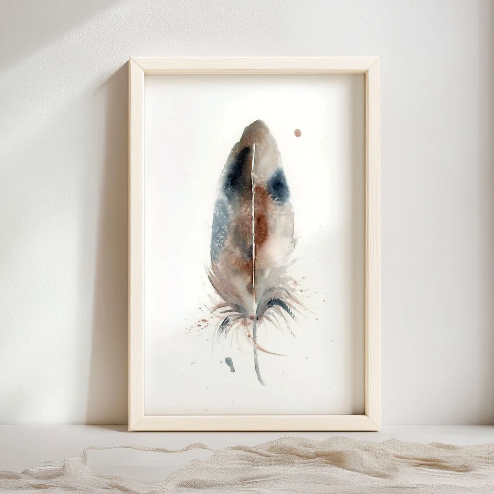 I chose soft, earthy tones, like gentle browns and deep blues, to create this feather, letting them blend gracefully. With each brushstroke, I aimed for subtle transitions, allowing the colors to bleed slightly into one another, capturing a simple kind… read more