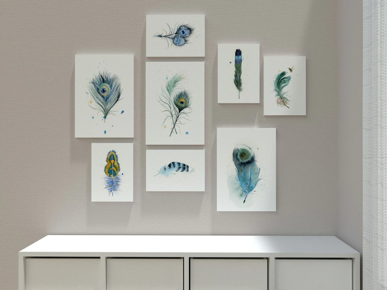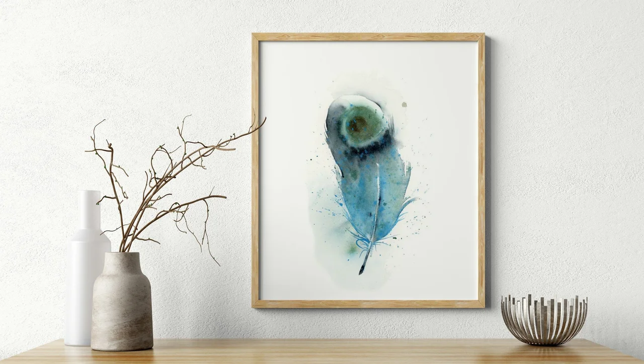 I used soft blues and greens to create this feather, allowing each color to gently blend into the other with smooth transitions that evoke a sense of tranquility. The delicate brushstrokes and subtle splatters suggest movement, as if it could… read more