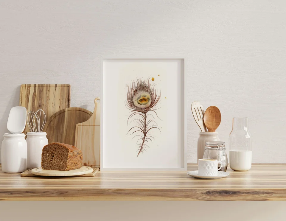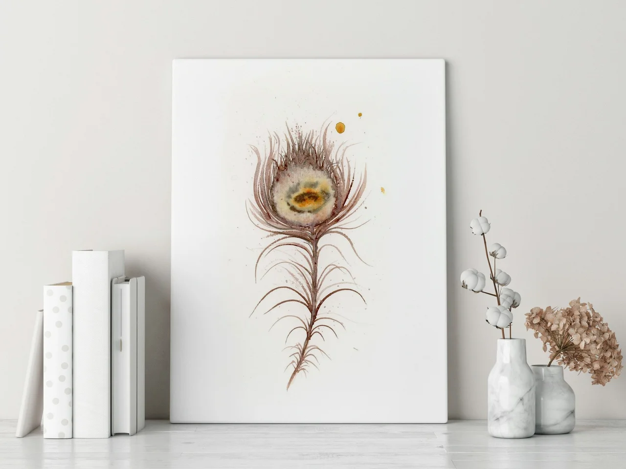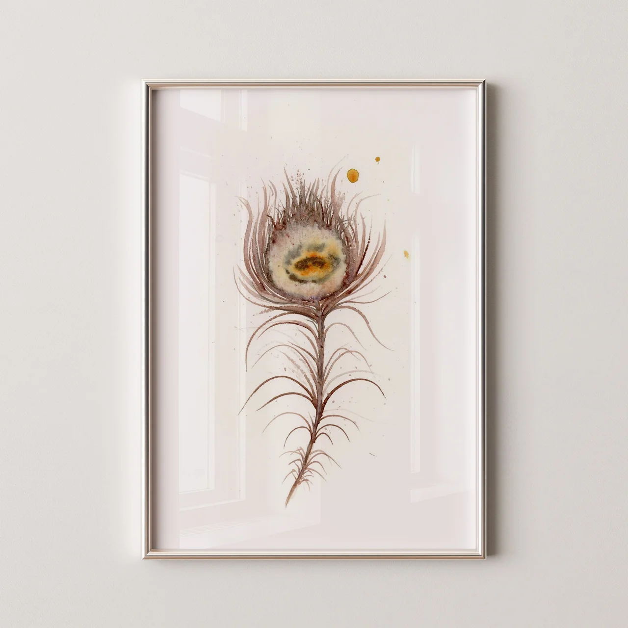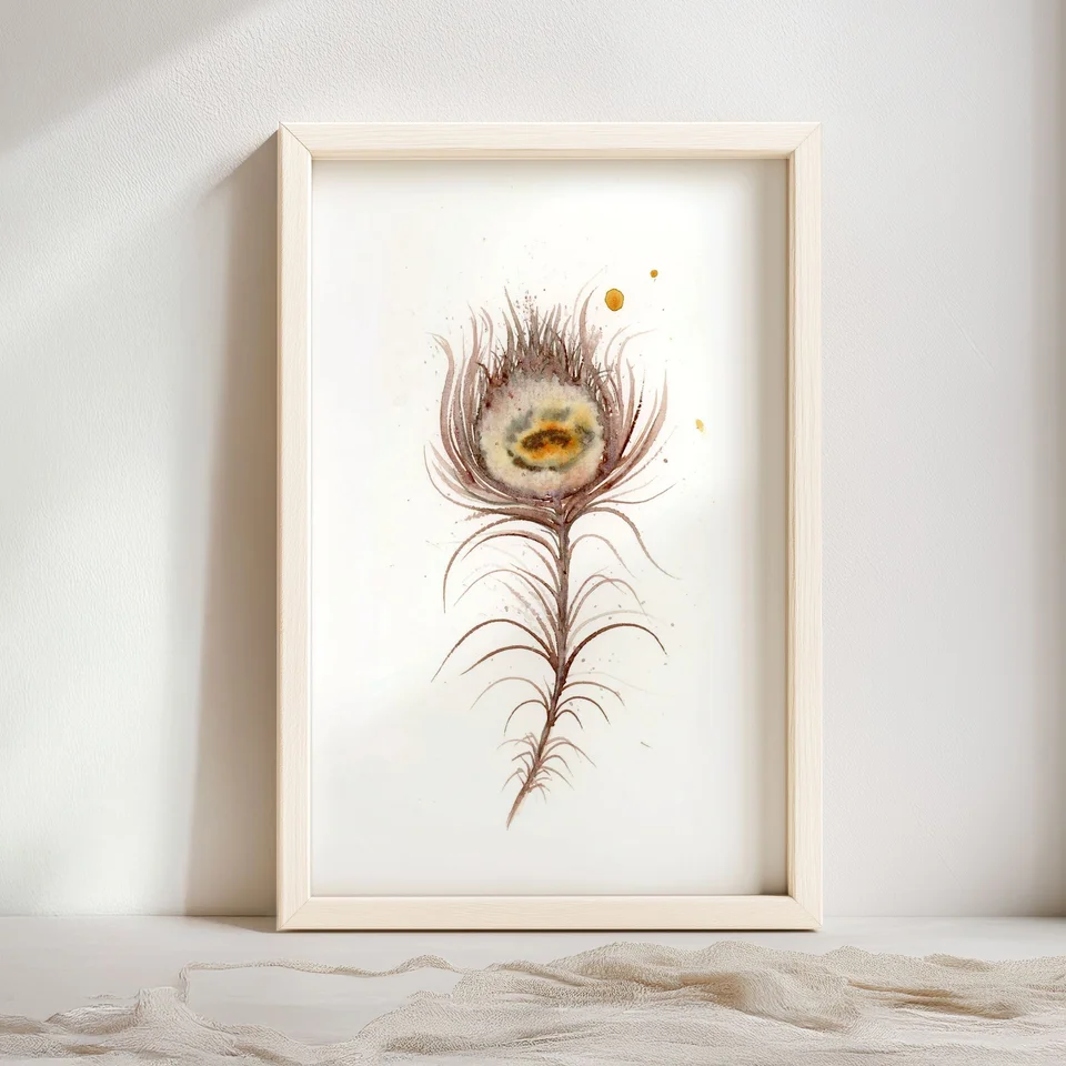 In crafting this piece, I embraced a gentle palette of earthy browns and soft yellows, letting them dance around the feather's eye with delicate washes. The fluid transitions and fine, tapered strokes create a sense of gentle movement that echoes… read more
