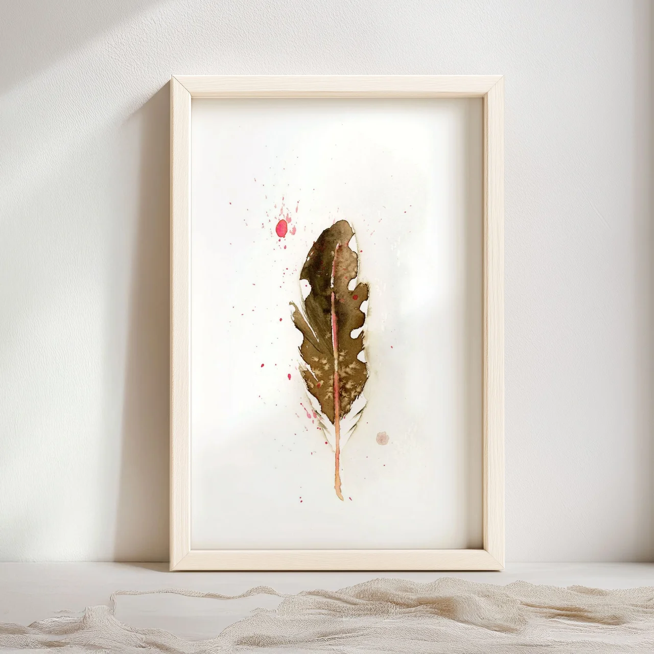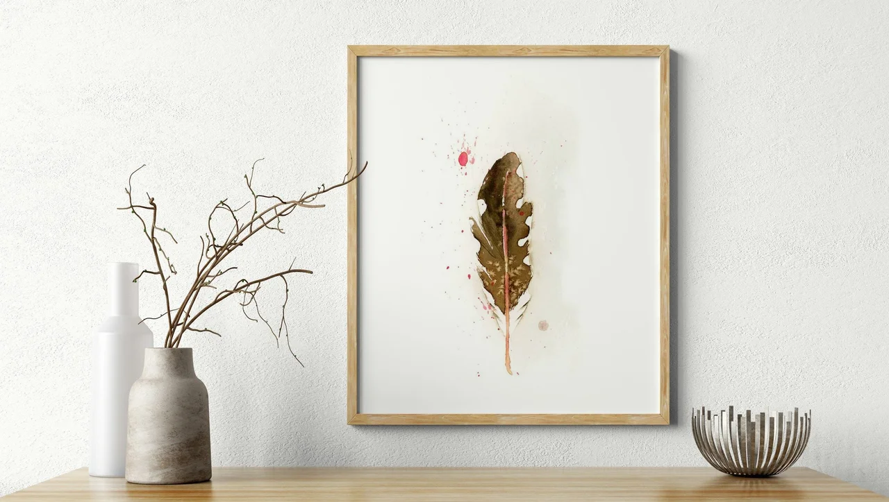 In this piece, I chose warm earth tones to capture the quiet elegance of a single feather, letting the rich browns flow seamlessly into each other. I carefully layered delicate washes of watercolor, allowing subtle drips and splatters of soft reds to whisper stories of the past around it. My brushstrokes are gentle yet deliberate, creating a soft blend that feels like a cherished memory—something familiar and grounding. — Shayna, August 2023