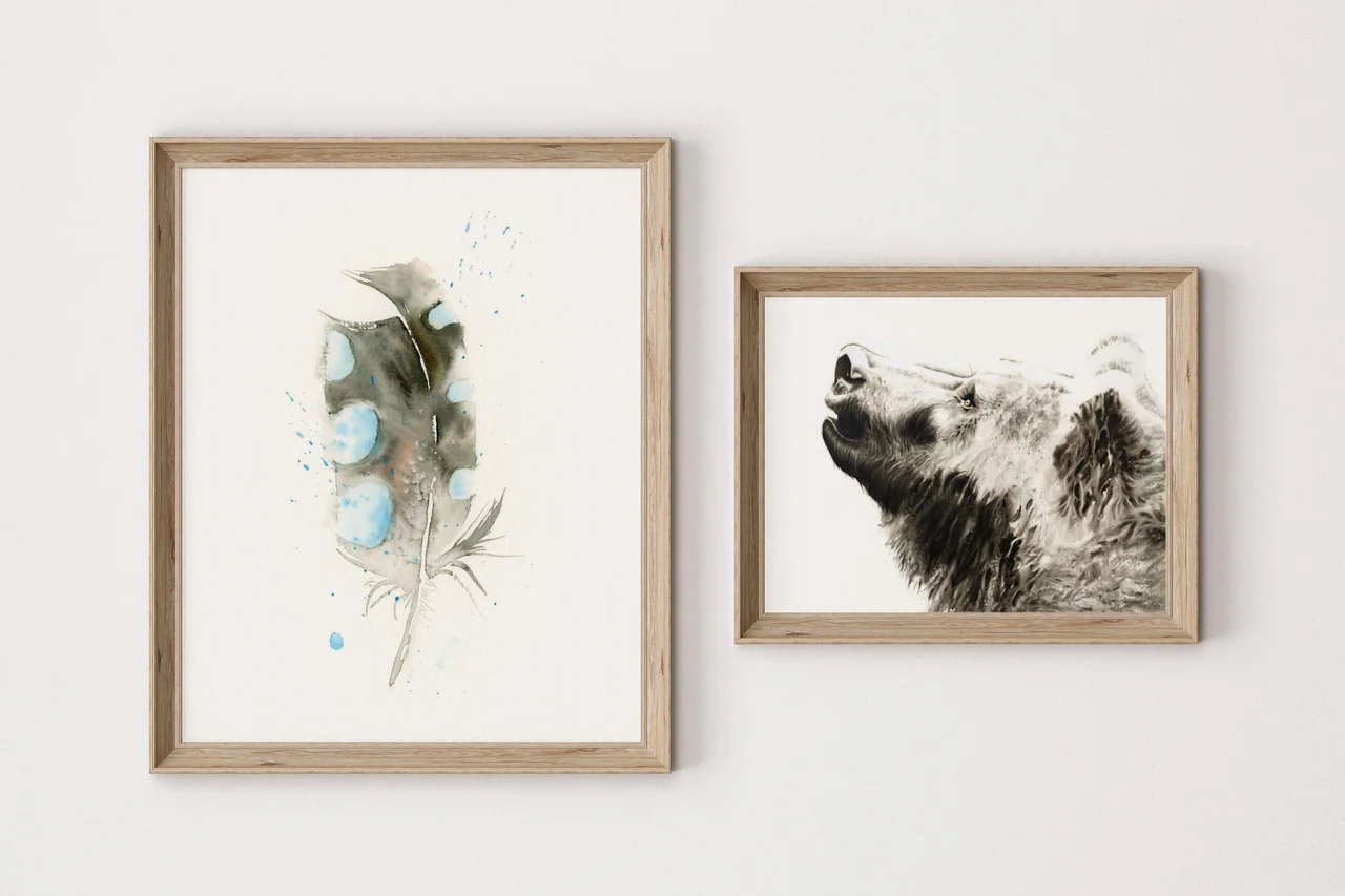 After painting "Bumble Bear" at a small size, I had a vision for this hopeful bear to be larger than life. I've experimented with a new color palette which beautifully compliments the earth pigment in his eye. Unlike the previous painting, this bear seemed so powerful at this size the he didn't need a bee to look at. What he's looking at is for the veiw to decide. Bear Spirit provides us with strength in times when we feel weak or helpless. — Shayna, June 2024