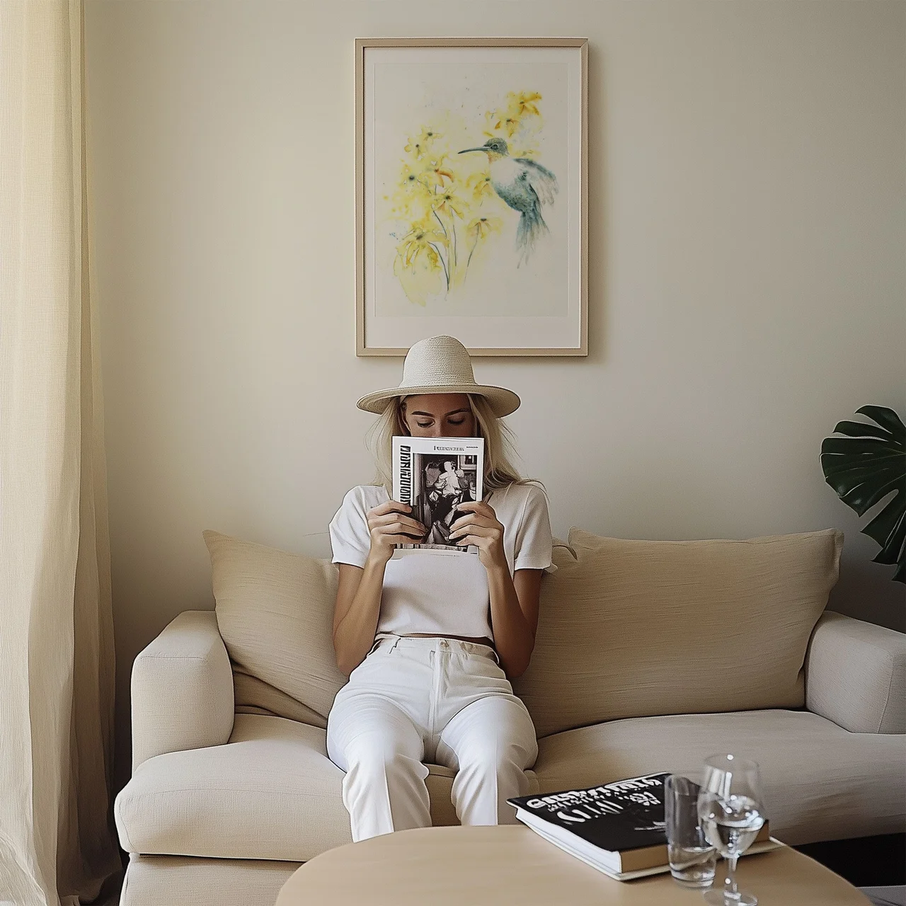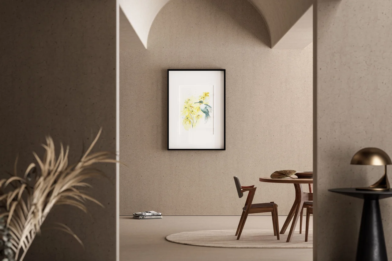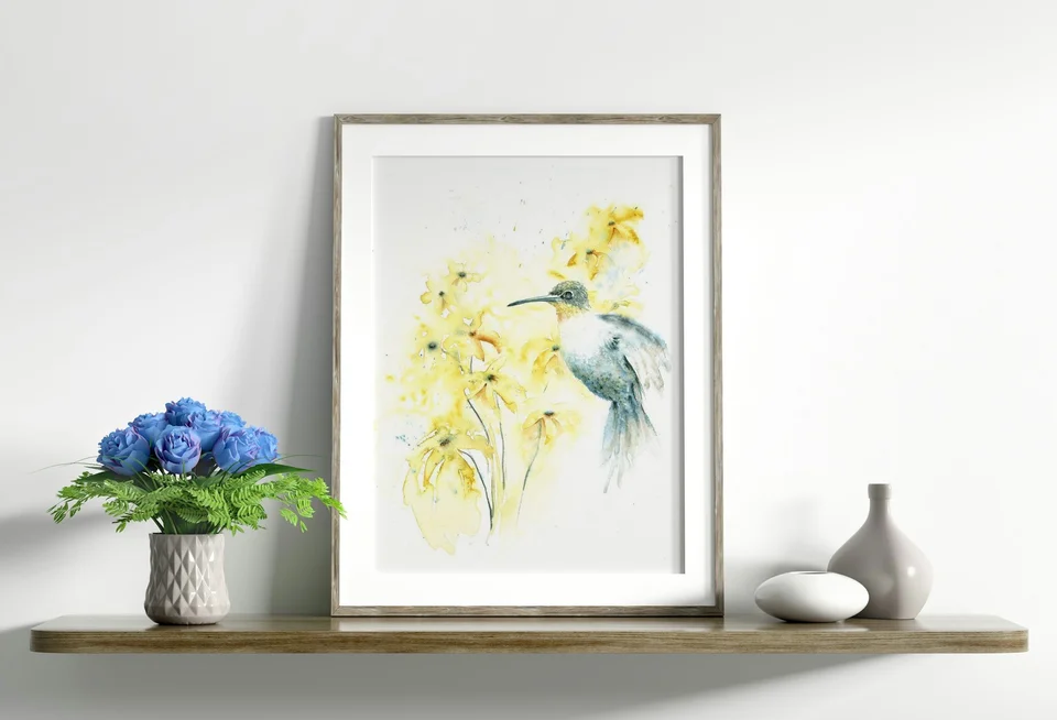 This original watercolor is 11" x 14". The Saunders Waterford 140# watercolor paper is mounted on a wood panel. Finished with archival spray varnish and hand buffed with cold wax medium. Custom framed and ready to hang.