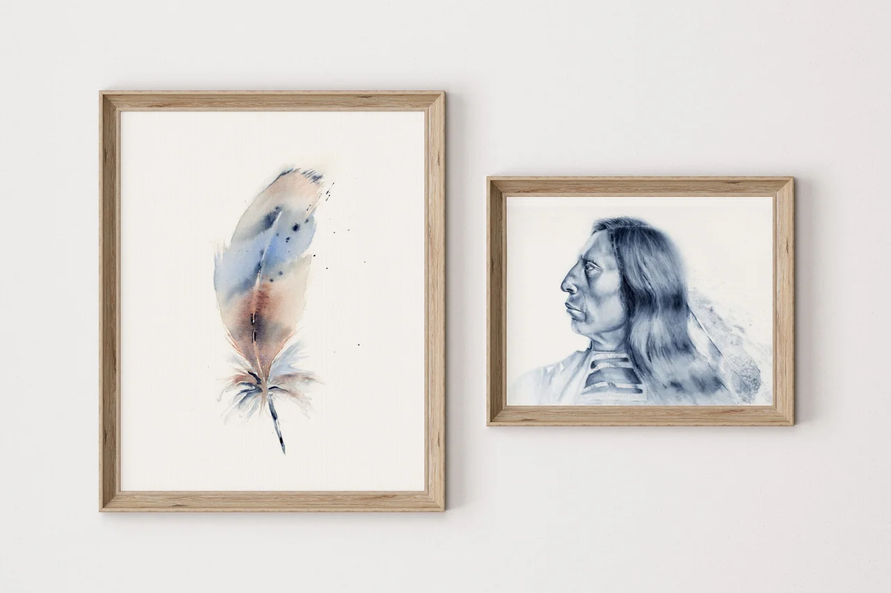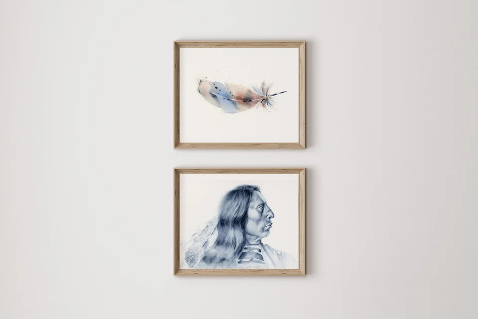 At this point, I'm on my 3rd painting in this series and I'm getting in the groove with my "Spirit of the West" Collection. Strangley, I've never really painted humans, but again I felt moved to include a powerful leader of this western history. Jack Red Cloud, son of Chief Red Cloud (1822-1909), the Sioux chief who led opposition to the Bozeman Trail through Indian lands stood out to me and represented a specialness that captivated me to want to try to capture his brave demeanor in watercolor. — Shayna, June 2021