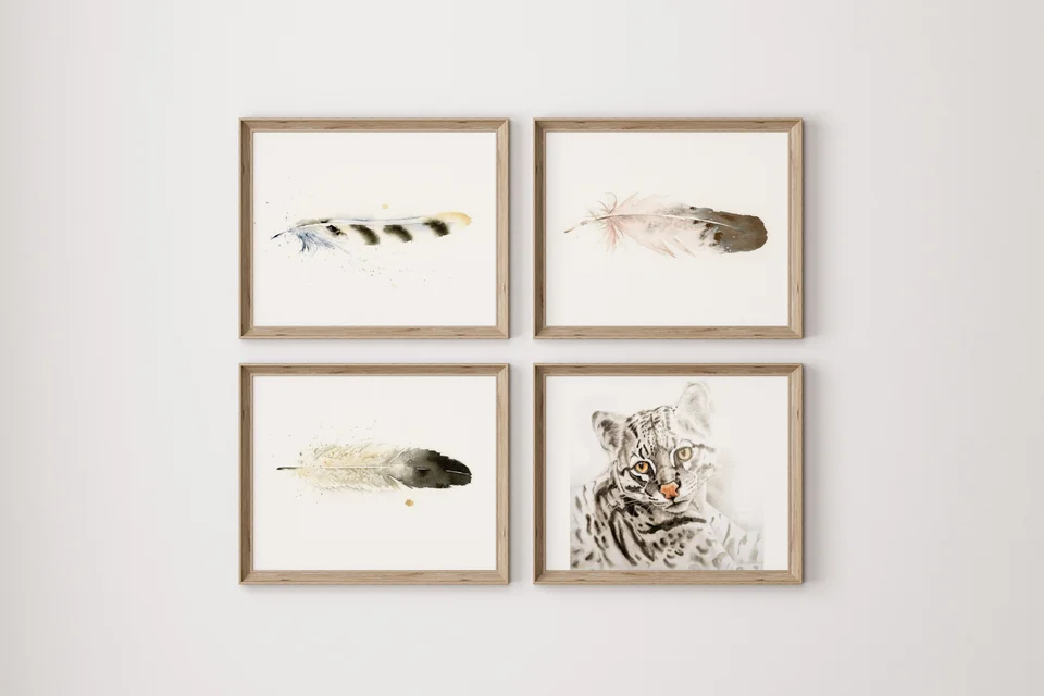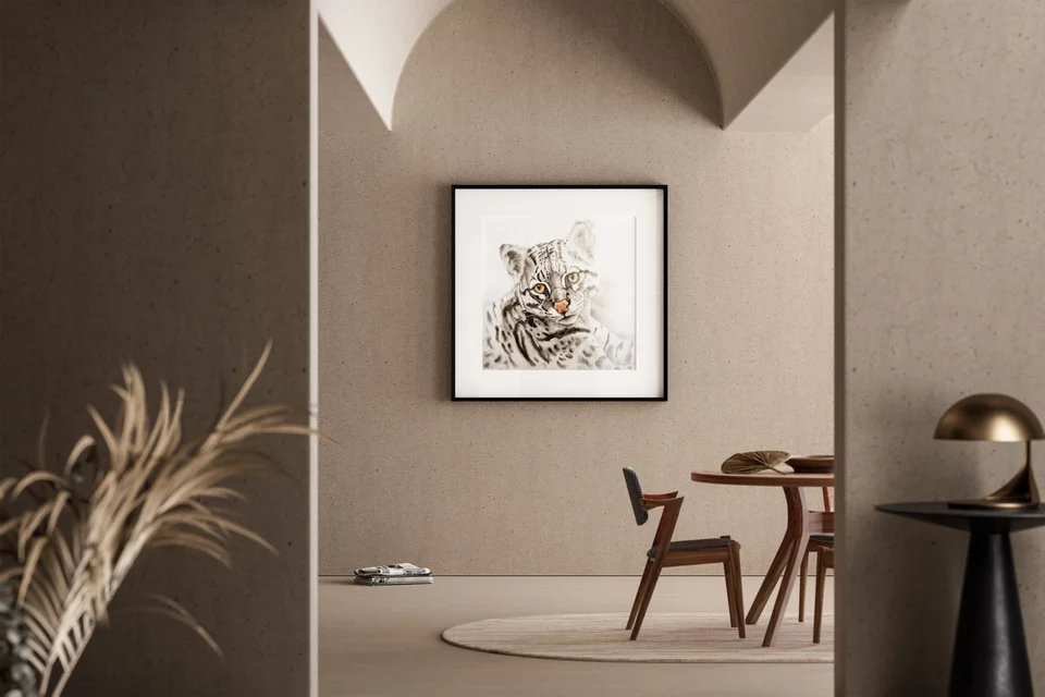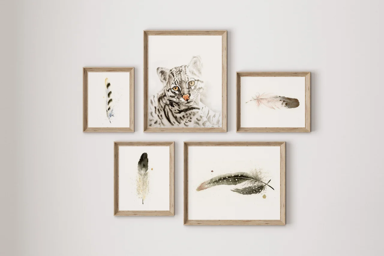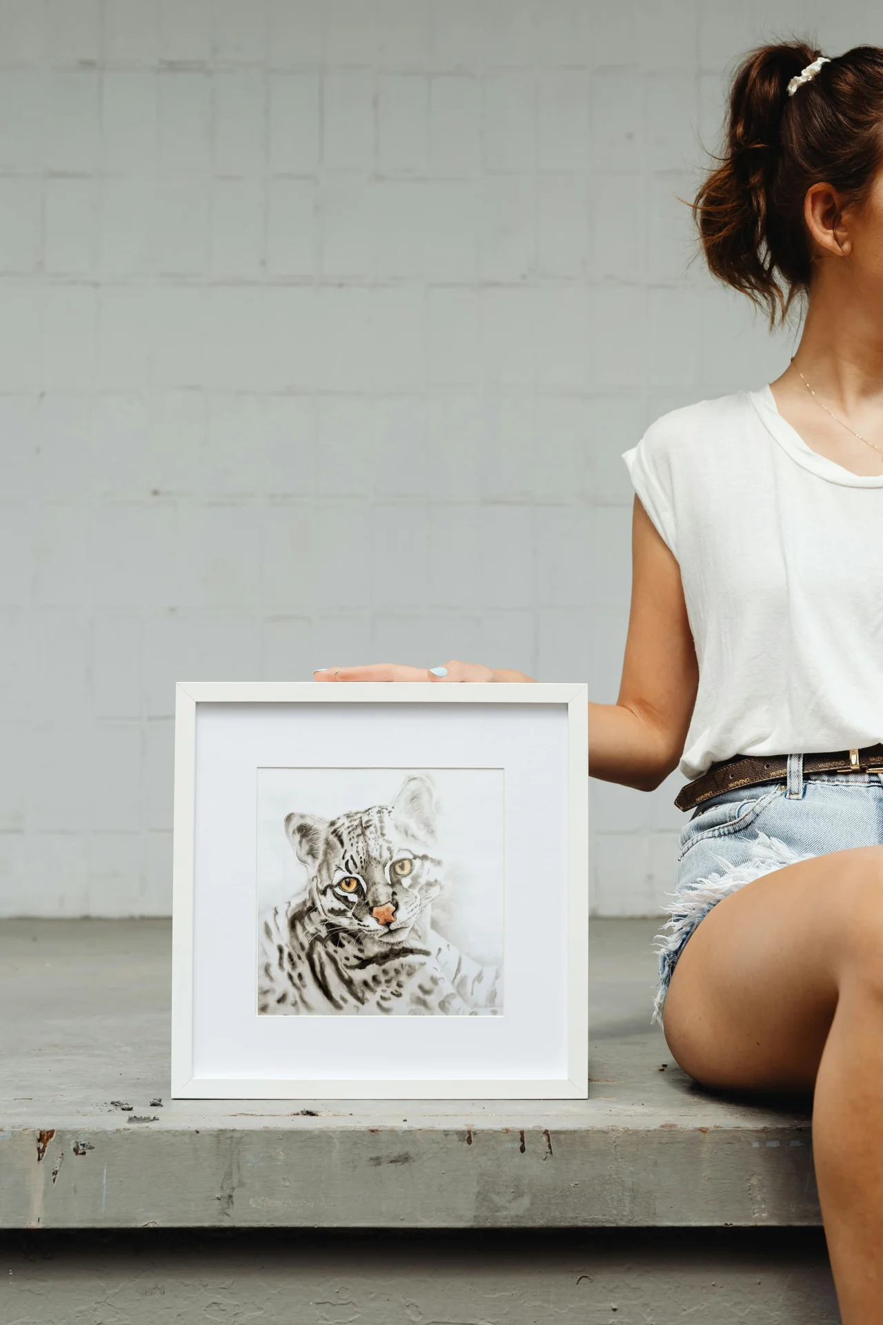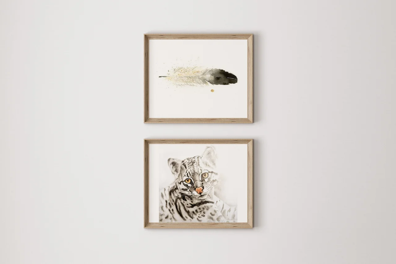 Commissioned for a family's newly remodeled home, this painting of an ocelot carries deep symbolism, making it a meaningful addition to their space. The ocelot, often regarded as a pathfinder, embodies guidance, intuition, and independence. In the wild, these graceful and determined creatures navigate their surroundings with precision, reminding us of the importance of trusting our instincts and confidently forging our own paths in life.