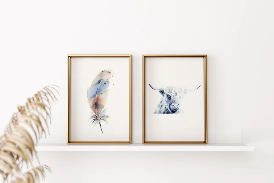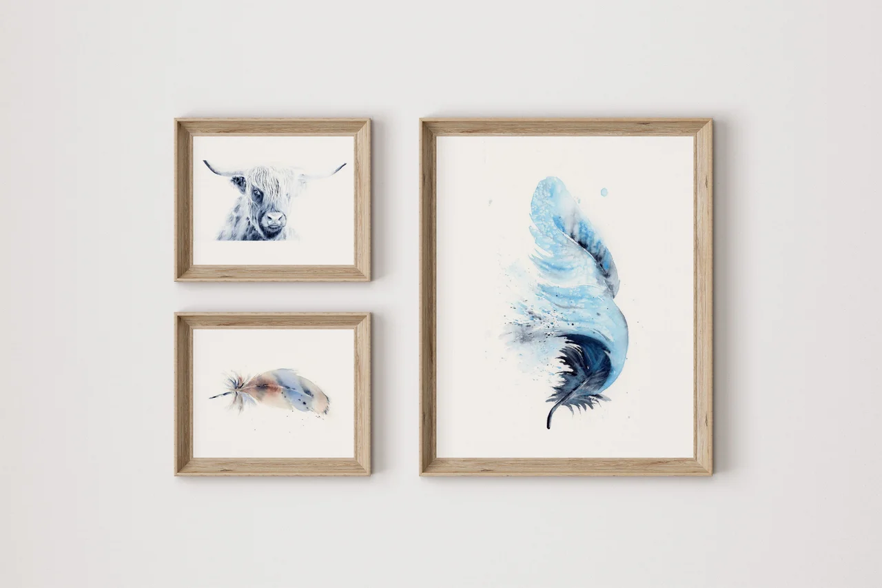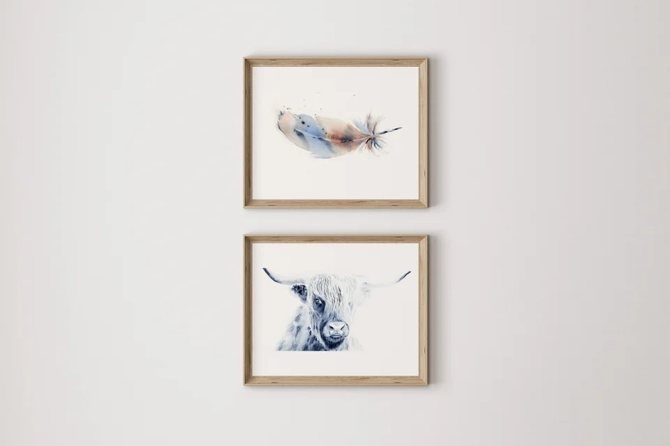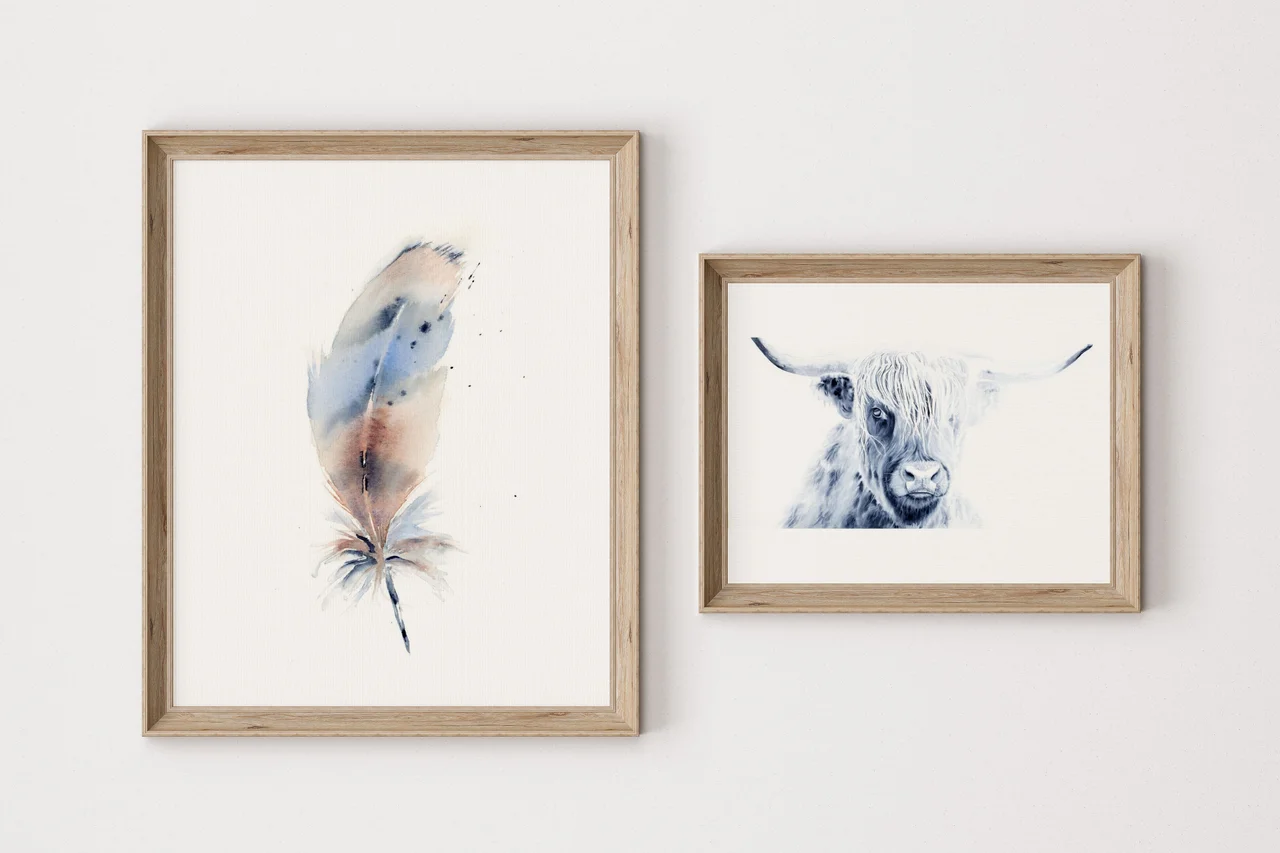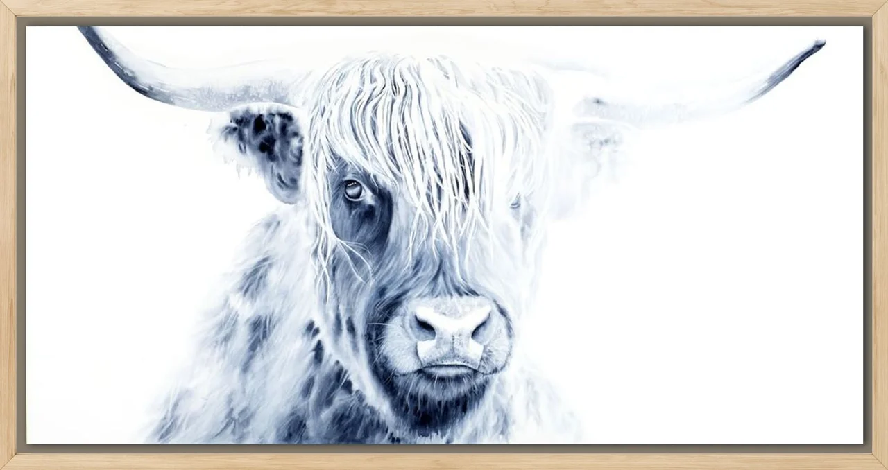 Sometimes I have ideas and then make silly rules that limit my ideas. The Highland Cow isn't necessarily "Colorado" or "wild life", but at this point in my collection I was looking to challenge myself. These beautiful creatures have such luxurious hair and expressions that peaked my interest. Could I capture the essence of this breed? Is it okay that this subject is a tangent from "wild life"? I sat with these questions and the eagerness to paint him was still strong. I took that as a yes! I couldn't find a reference photo that fit what was in my minds eye, so I created my own. I collaged several different highland cows together to get the hair, horns and eye that matched my vision. I also threw caution to the wind and utilized white guoache. So happy with the final outcome. Sometimes what comes out in the end is better than what I saw in my head. — Shayna, June 2022